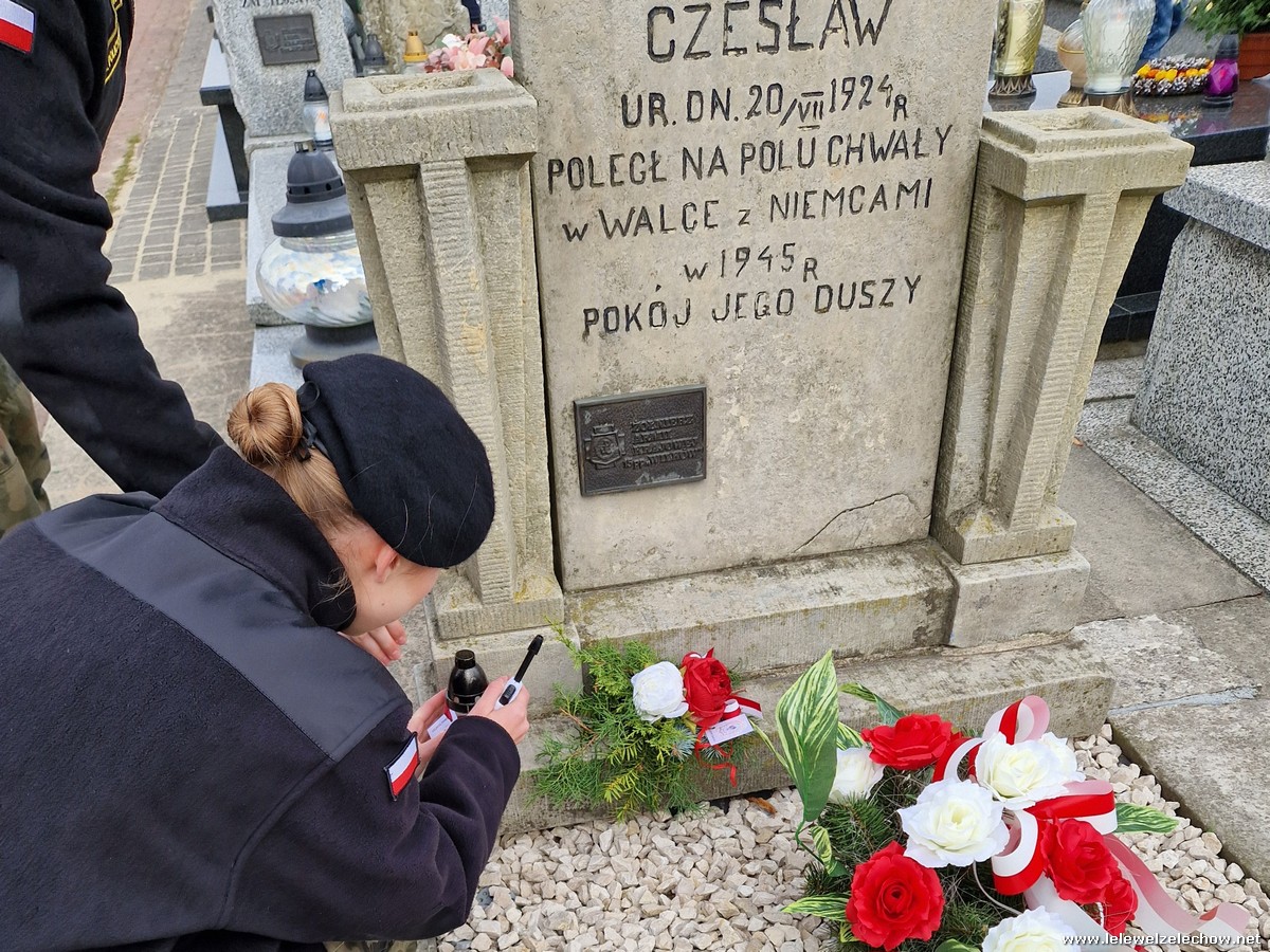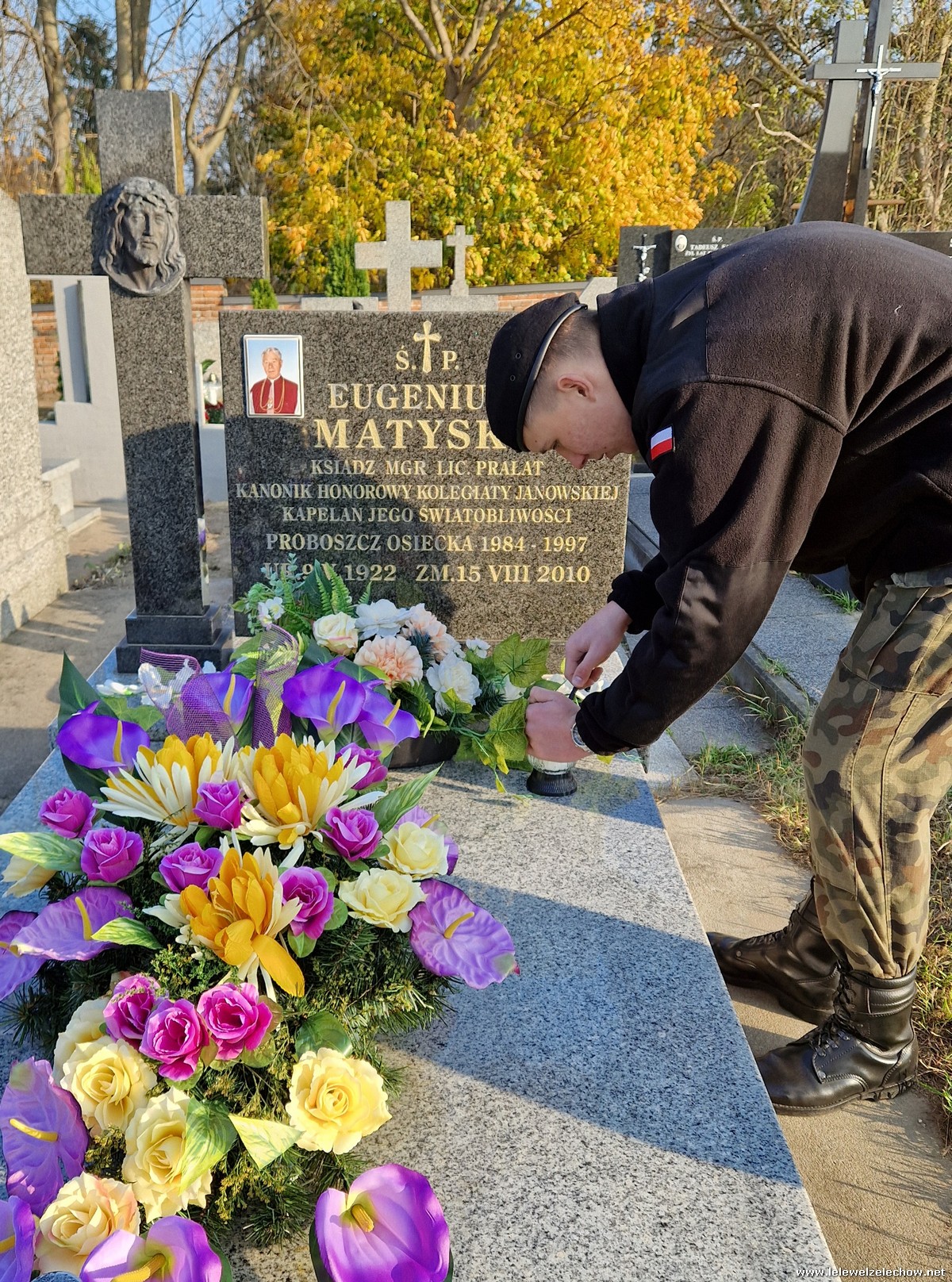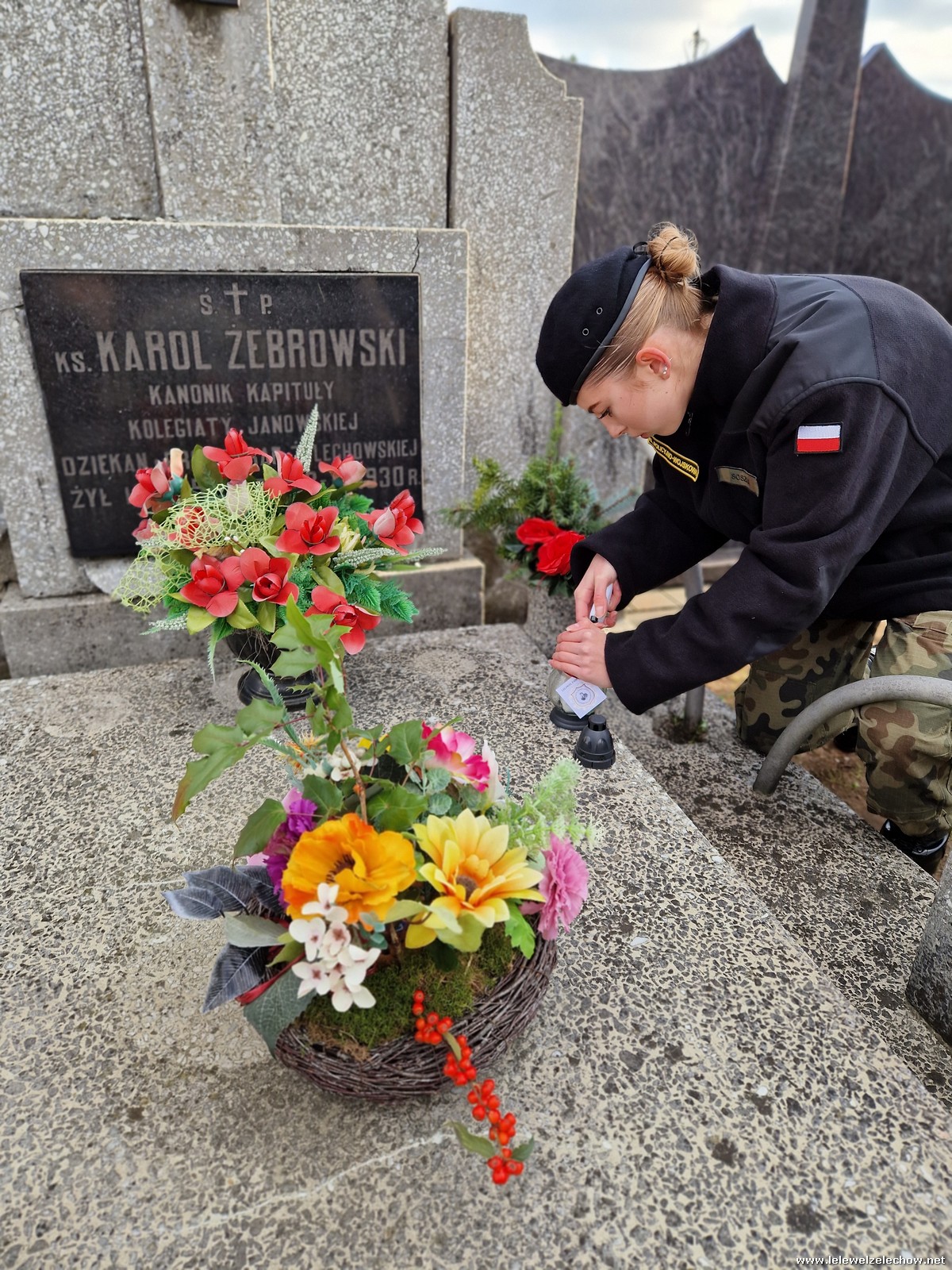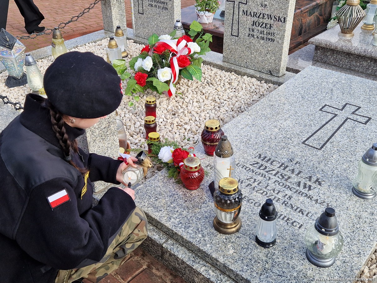 1 listopada tradycyjnie już nasi mundurowi z grupy policyjno-wojskowej klas drugich pełnili honorową wartę przy tablicy AK na miejscowym cmentarzu. Kadeci złożyli biało - czerwone wiązanki przed tablicą AK, a także na grobach naszych Dyrektorów - pani Antoniny Salwy oraz Władysława Opali. Zapalili również znicze. Młodzieży towarzyszyły - pani Dyrektor Sylwia Tomaszek oraz Urszula Kobielus, nauczyciel historii. Wartę mundurowych przygotował mjr Piotr Władziński.