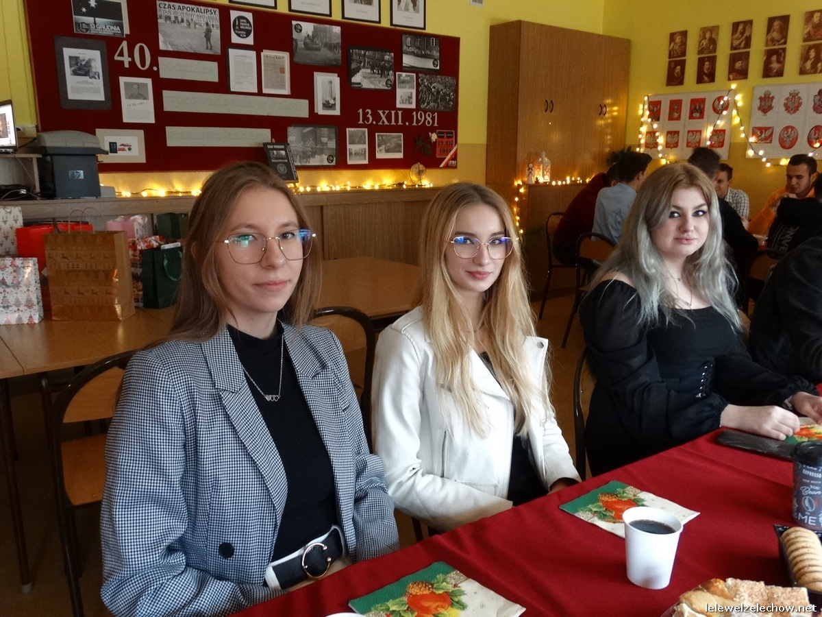 We wtorek 14 grudnia uczniowie klasy 3a spotkali się na tradycyjnej wigilii klasowej. Ze względu na obecne obostrzenia spotkanie to odbyło się w nieco ograniczonej formie jednakże z zachowaniem tradycji oraz w miłej i serdecznej atmosferze. W ozdobionej świątecznie sali uczniowie zebrali się przy wspólnym stole. Na początku odczytany został fragment Ewangelii, odmówiono krótką modlitwę a następnie wspólnie zaśpiewano kolędę ,,Wśród nocnej ciszy.” Następnie życzenia wszystkim złożyli przewodniczący klasy - Wiktor Mikusek oraz wychowawczyni pani Urszula Kobielus, po czym nastąpiło symboliczne przełamanie opłatkiem. W wigilii uczestniczyła również- zdalnie! - wychowawczyni z klasy I - pani Olga Witek - Cichecka. Wesołą atmosferę dopełnił Mikołaj, który przyszedł do wszystkich grzecznych dzieci :) Zwieńczeniem spotkania były wspólne zdjęcia pod szkolną choinką.