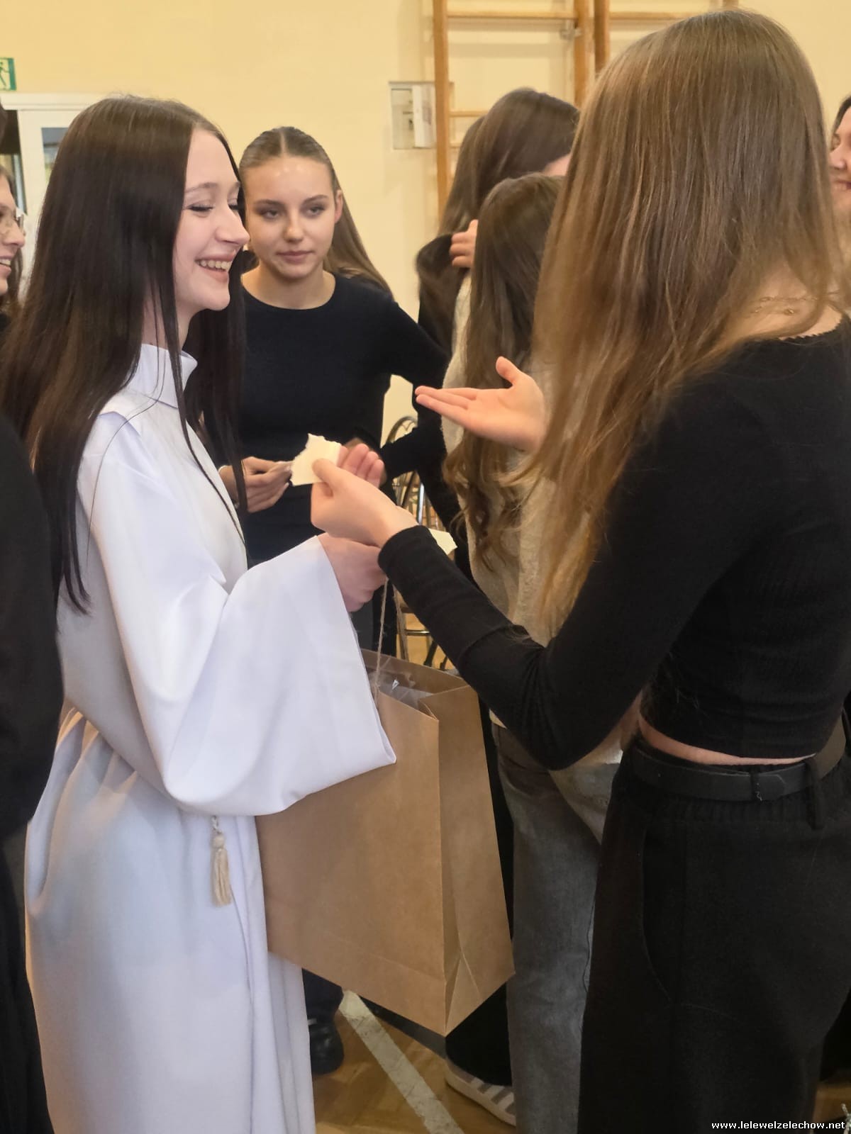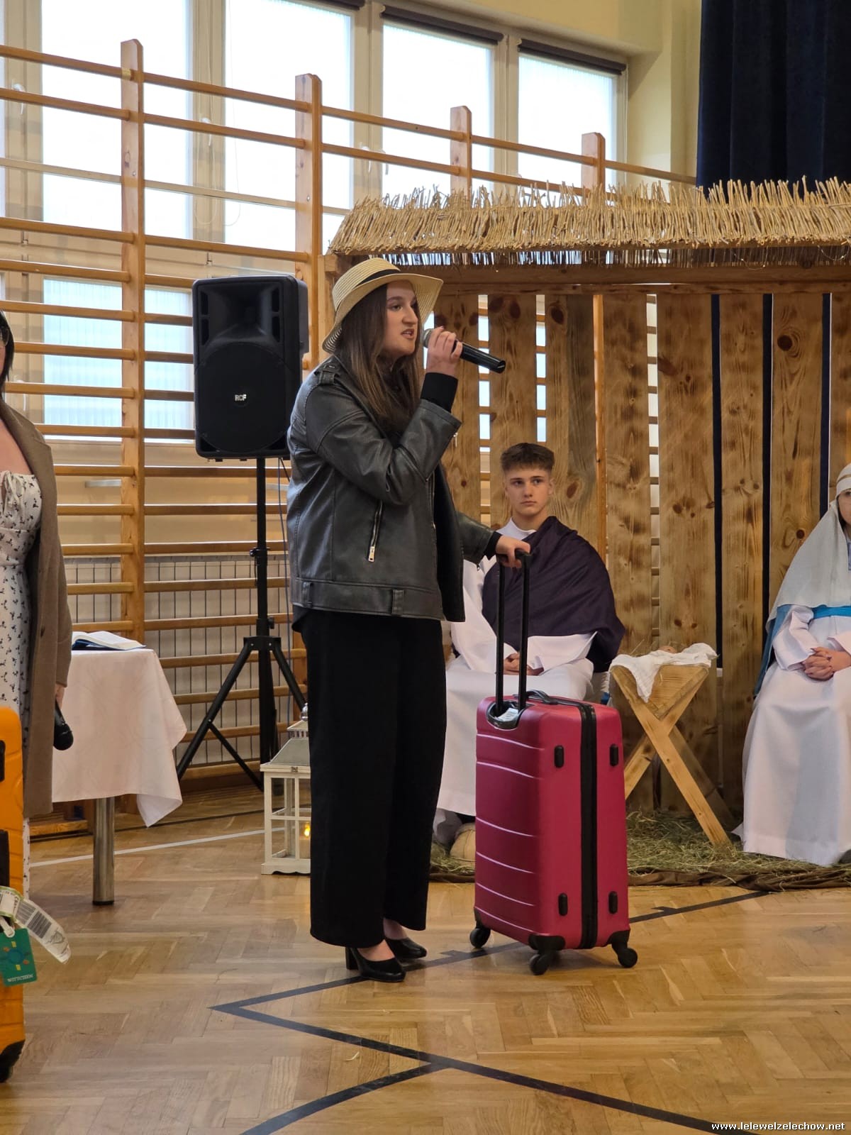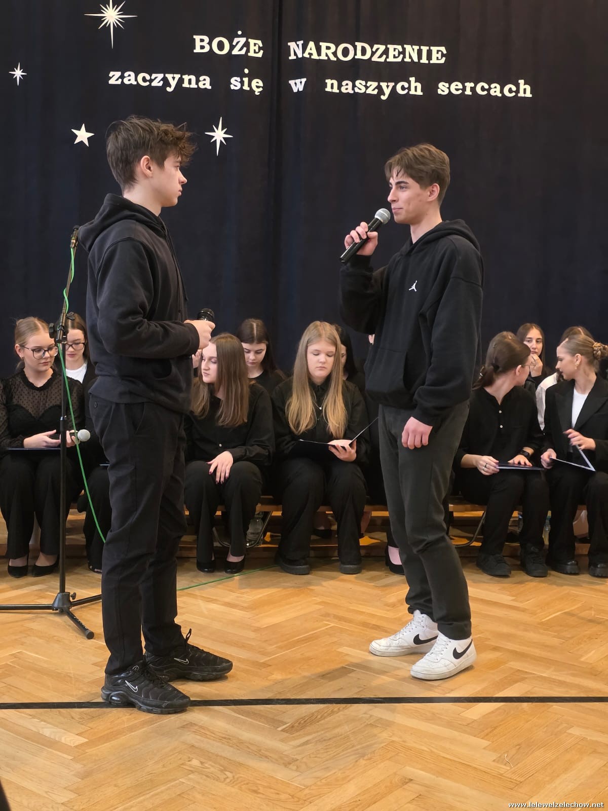 W tym roku jasełkom przyświecało hasło "W drodze do Betlejem". Uczniowie klas drugich w kilku scenkach uświadomili nam, że w świętach najważniejsze jest spotkanie z Bogiem i drugim człowiekiem, a Boże Narodzenie zaczyna się w naszych sercach. Solistki i chórek klas drugich przy wsparciu starszych koleżanek pięknie zaśpiewali kolędy. Po jasełkach goście, pani dyrektor Sylwia Tomaszek, przedstawiciele Samorządu Uczniowskiego złożyli życzenia, następnie ksiądz Mariusz Rompa odczytał fragment Pisma Świętego, po czym podzieliliśmy się opłatkiem.