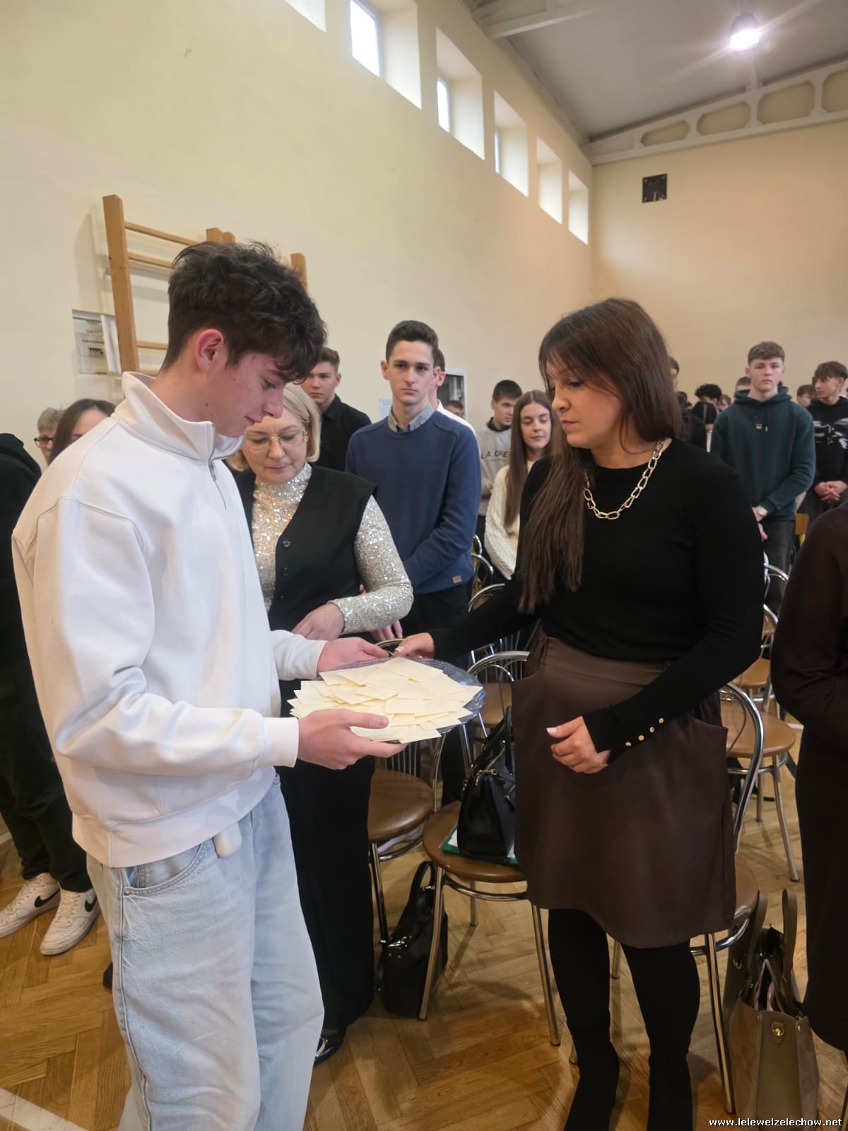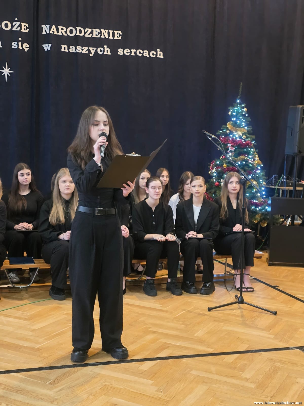 W dniu dzisiejszym w naszej szkole odbyła się uroczysta Wigilia , na której zgromadziła się cała społeczność szkolna oraz goście: Wicestarosta Powiatu Garwolińskiego - pan Mirosław Walicki i Przewodnicząca Rady Rodziców - pani Ksenia Karbowska.