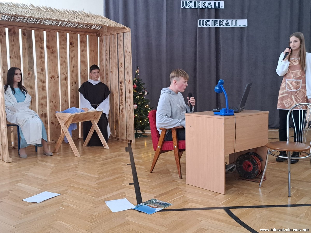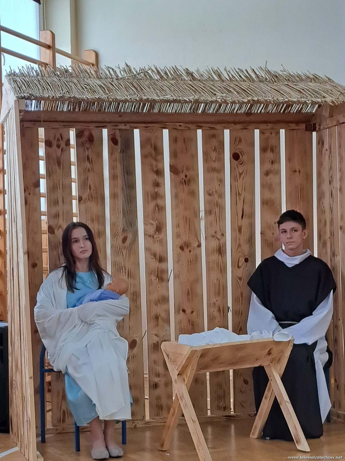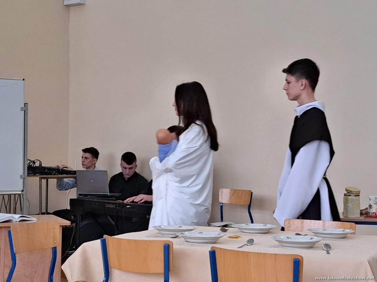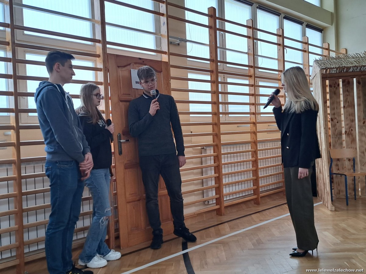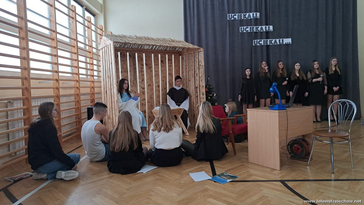 W tygodniu poprzedzającym Święta Bożego Narodzenia w naszej szkole odbyła się niejedna wigilia. Każda z klas spotkała się przy wspólnym stole, podzieliła się opłatkiem, życząc sobie dobra i piękna. To wyjątkowy, magiczny czas, który wprowadza nas w te najbardziej wyczekiwane święta w roku. I mimo tego, że zarówno w szkole, jak i w domu obowiązków nie brakowało, to dało się odczuć radość i atmosferę oczekiwania. Szczególnie doświadczyliśmy tego podczas Szkolnej Wigilii, która była okazją do spotkania sią całej społeczności szkolnej. Mogliśmy podczas niej wejść głębiej w tajemnice Bożego Narodzenia i zastanowić się, co ten czas dla nas znaczy. Umożliwili nam to uczniowie, którzy pod opieką księdza Mariusza Rompy i pani Anny Majewskiej przygotowali piękny i pełen głębokich treści program artystyczny. Każdy z uczestników wigilii, o ile uważnie oglądał i słuchał, mógł odnaleźć w tym przedstawieniu siebie. Poszczególne scenki przeplatane kolędami były okazją do refleksji nad własnym życiem. Dziękujemy wszystkim uczestnikom programu za tak wiele mądrych myśli i wzruszeń, za piękny śpiew i akompaniament, za wymowną scenkę spotkania przy stajence. Podczas spotkania nie zabrakło też kolęd i życzeń, które składaliśmy sobie nawzajem. Do całej społeczności szkolnej zwrócili się: Pani Dyrektor, Ksiądz prałat Eugeniusz Filipiuk, Ksiądz Mariusz Rompa, Samorząd Uczniowski. Niech święta Bożego Narodzenia napełnią nas nadzieją, dobrem, życzliwością i abyśmy potrafili dzielić się tym wszystkim z drugim człowiekiem.