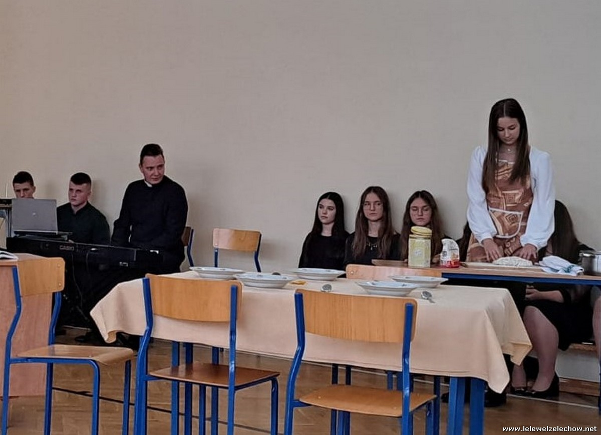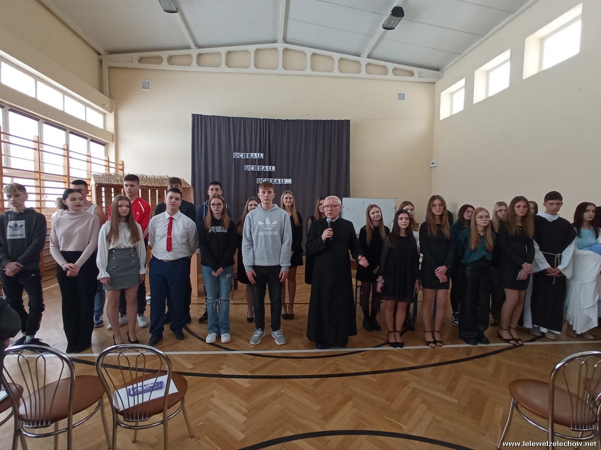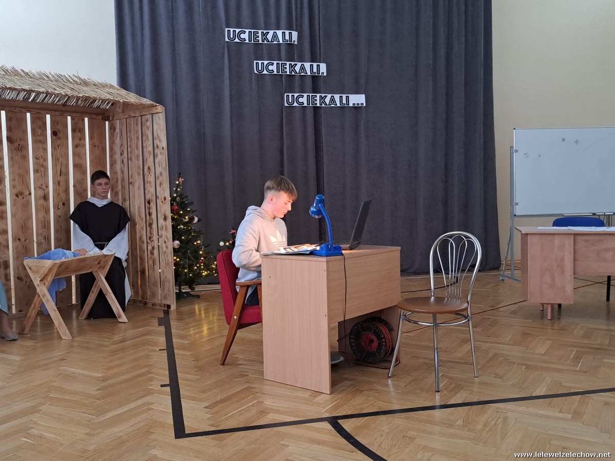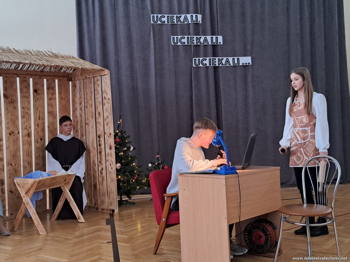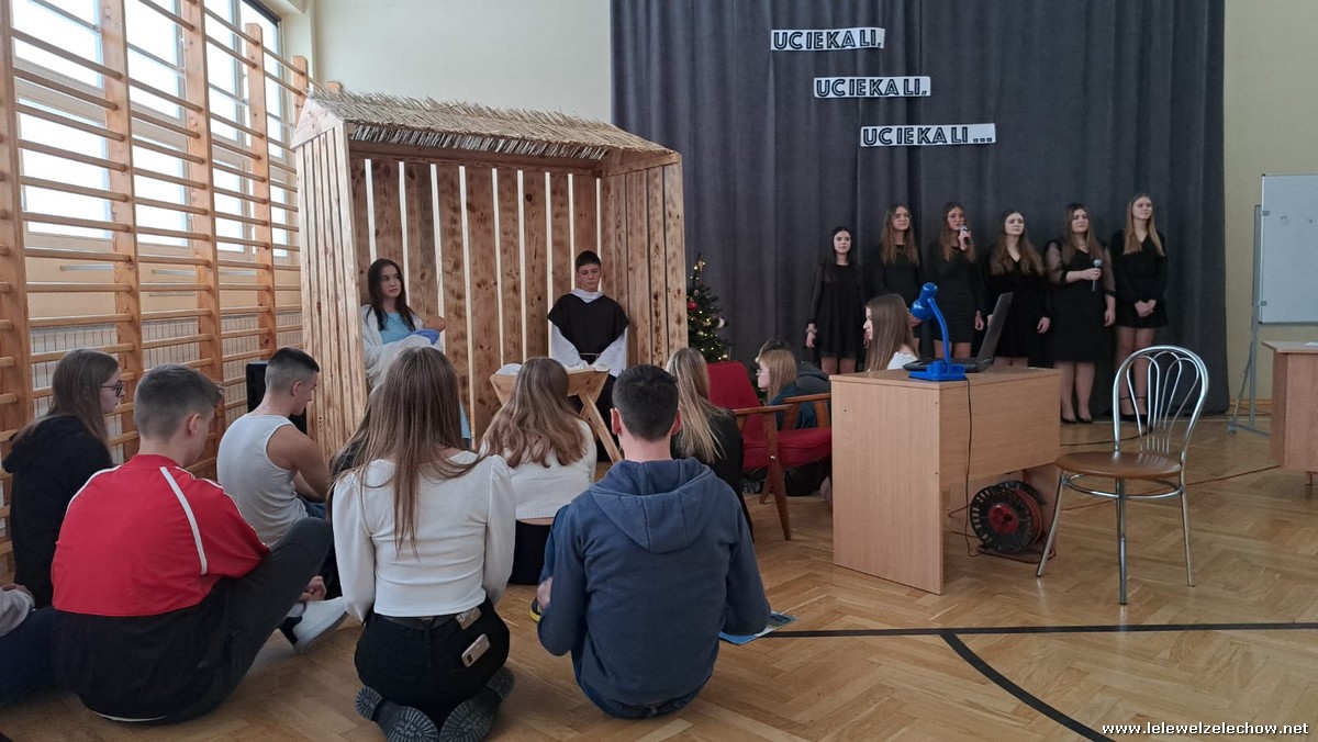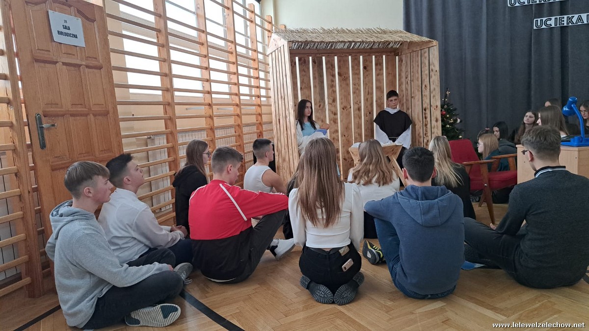 W tygodniu poprzedzającym Święta Bożego Narodzenia w naszej szkole odbyła się niejedna wigilia. Każda z klas spotkała się przy wspólnym stole, podzieliła się opłatkiem, życząc sobie dobra i piękna. To wyjątkowy, magiczny czas, który wprowadza nas w te najbardziej wyczekiwane święta w roku. I mimo tego, że zarówno w szkole, jak i w domu obowiązków nie brakowało, to dało się odczuć radość i atmosferę oczekiwania. Szczególnie doświadczyliśmy tego podczas Szkolnej Wigilii, która była okazją do spotkania sią całej społeczności szkolnej. Mogliśmy podczas niej wejść głębiej w tajemnice Bożego Narodzenia i zastanowić się, co ten czas dla nas znaczy. Umożliwili nam to uczniowie, którzy pod opieką księdza Mariusza Rompy i pani Anny Majewskiej przygotowali piękny i pełen głębokich treści program artystyczny. Każdy z uczestników wigilii, o ile uważnie oglądał i słuchał, mógł odnaleźć w tym przedstawieniu siebie. Poszczególne scenki przeplatane kolędami były okazją do refleksji nad własnym życiem. Dziękujemy wszystkim uczestnikom programu za tak wiele mądrych myśli i wzruszeń, za piękny śpiew i akompaniament, za wymowną scenkę spotkania przy stajence. Podczas spotkania nie zabrakło też kolęd i życzeń, które składaliśmy sobie nawzajem. Do całej społeczności szkolnej zwrócili się: Pani Dyrektor, Ksiądz prałat Eugeniusz Filipiuk, Ksiądz Mariusz Rompa, Samorząd Uczniowski. Niech święta Bożego Narodzenia napełnią nas nadzieją, dobrem, życzliwością i abyśmy potrafili dzielić się tym wszystkim z drugim człowiekiem.
