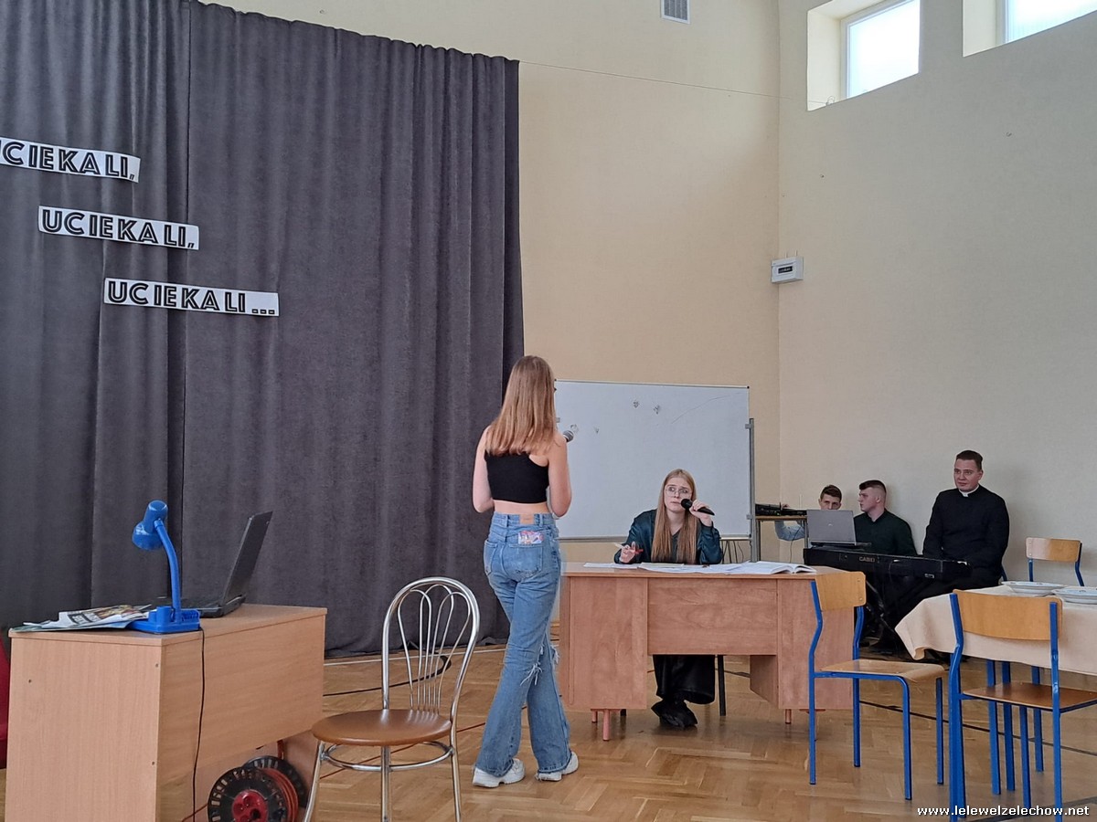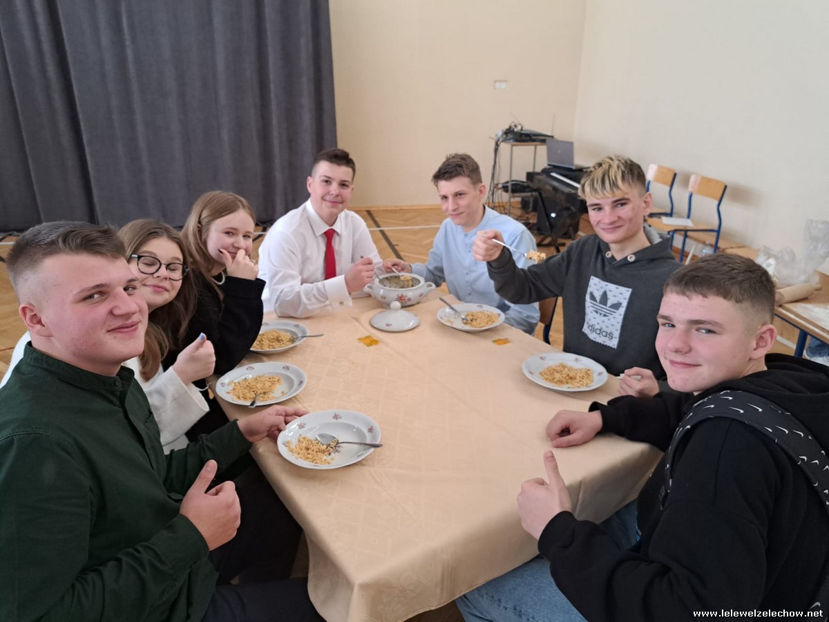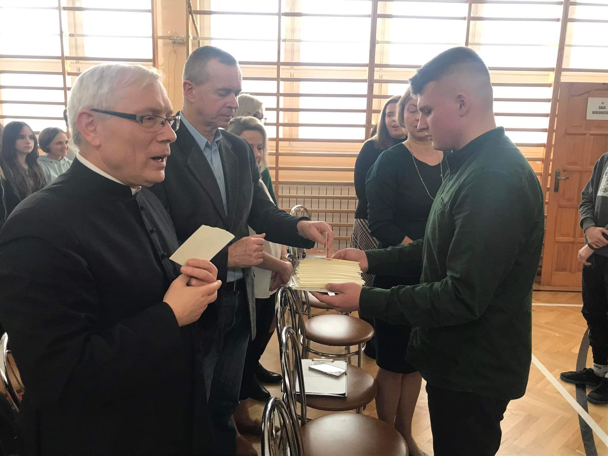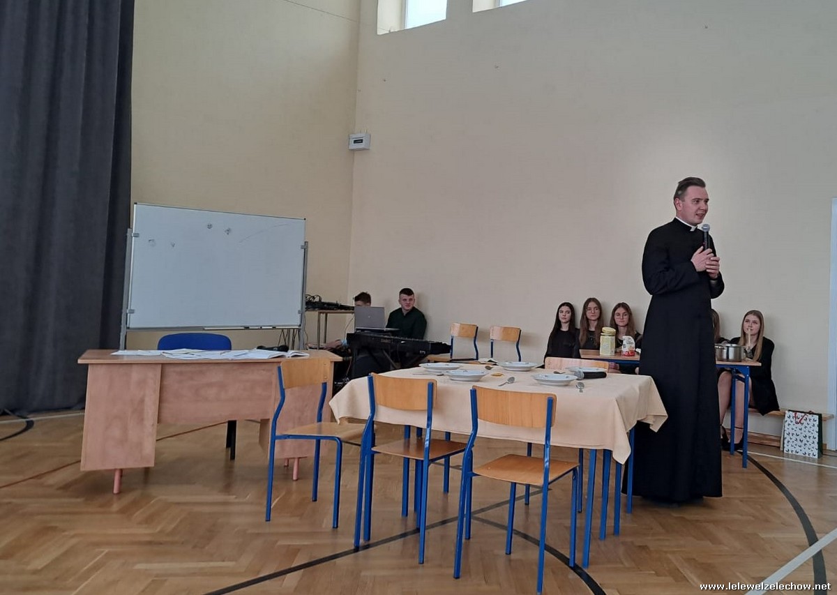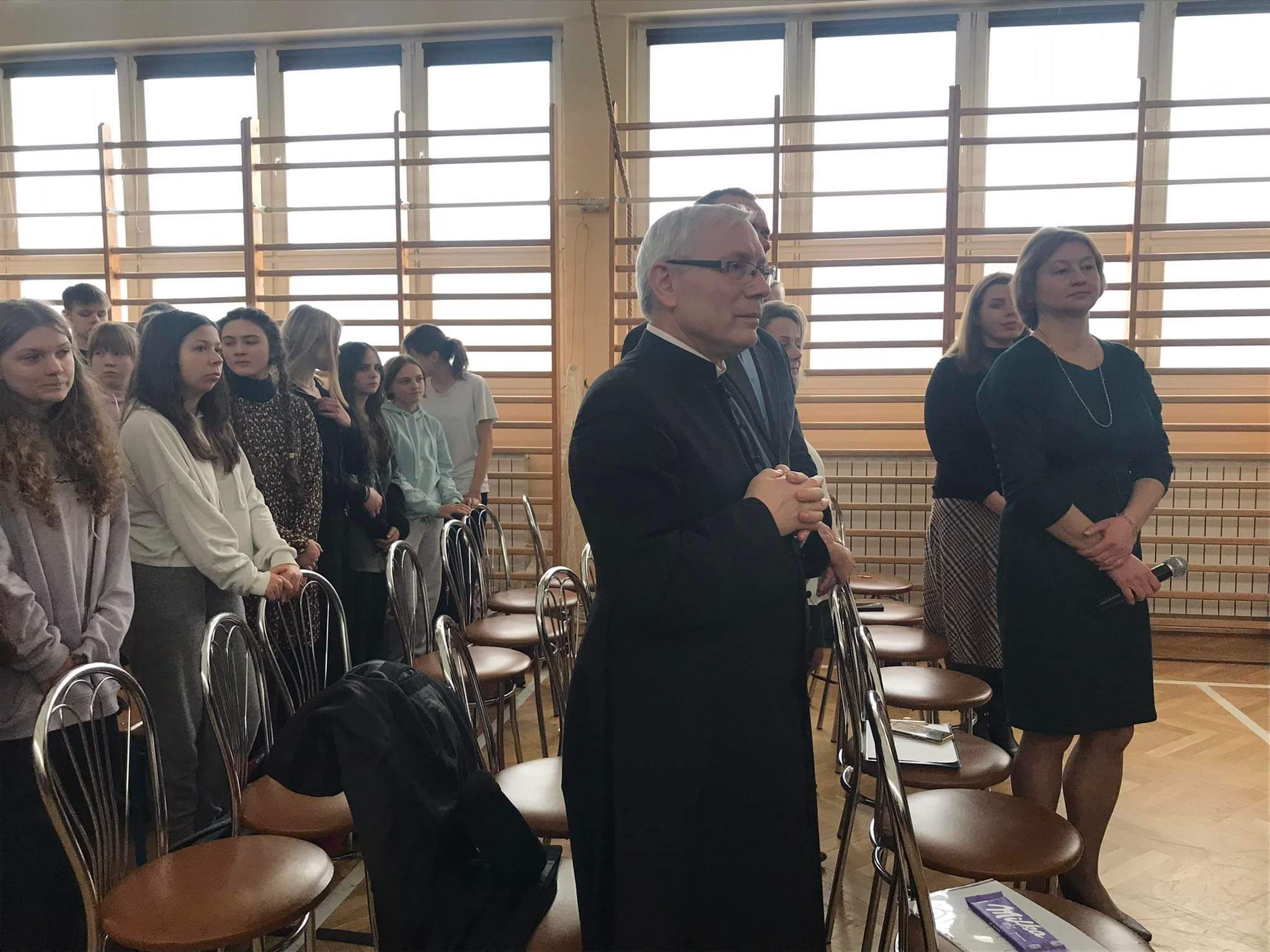 W tygodniu poprzedzającym Święta Bożego Narodzenia w naszej szkole odbyła się niejedna wigilia. Każda z klas spotkała się przy wspólnym stole, podzieliła się opłatkiem, życząc sobie dobra i piękna. To wyjątkowy, magiczny czas, który wprowadza nas w te najbardziej wyczekiwane święta w roku. I mimo tego, że zarówno w szkole, jak i w domu obowiązków nie brakowało, to dało się odczuć radość i atmosferę oczekiwania. Szczególnie doświadczyliśmy tego podczas Szkolnej Wigilii, która była okazją do spotkania sią całej społeczności szkolnej. Mogliśmy podczas niej wejść głębiej w tajemnice Bożego Narodzenia i zastanowić się, co ten czas dla nas znaczy. Umożliwili nam to uczniowie, którzy pod opieką księdza Mariusza Rompy i pani Anny Majewskiej przygotowali piękny i pełen głębokich treści program artystyczny. Każdy z uczestników wigilii, o ile uważnie oglądał i słuchał, mógł odnaleźć w tym przedstawieniu siebie. Poszczególne scenki przeplatane kolędami były okazją do refleksji nad własnym życiem. Dziękujemy wszystkim uczestnikom programu za tak wiele mądrych myśli i wzruszeń, za piękny śpiew i akompaniament, za wymowną scenkę spotkania przy stajence. Podczas spotkania nie zabrakło też kolęd i życzeń, które składaliśmy sobie nawzajem. Do całej społeczności szkolnej zwrócili się: Pani Dyrektor, Ksiądz prałat Eugeniusz Filipiuk, Ksiądz Mariusz Rompa, Samorząd Uczniowski. Niech święta Bożego Narodzenia napełnią nas nadzieją, dobrem, życzliwością i abyśmy potrafili dzielić się tym wszystkim z drugim człowiekiem.