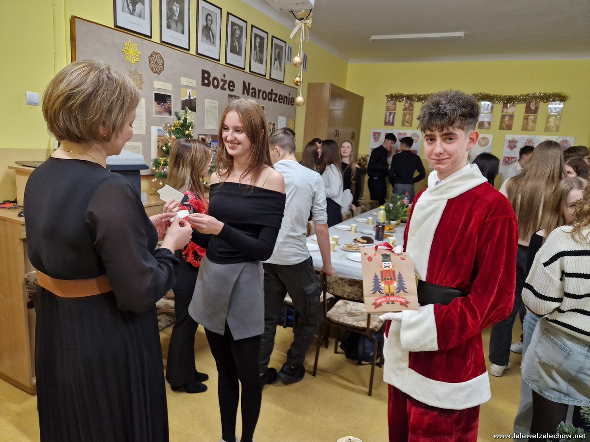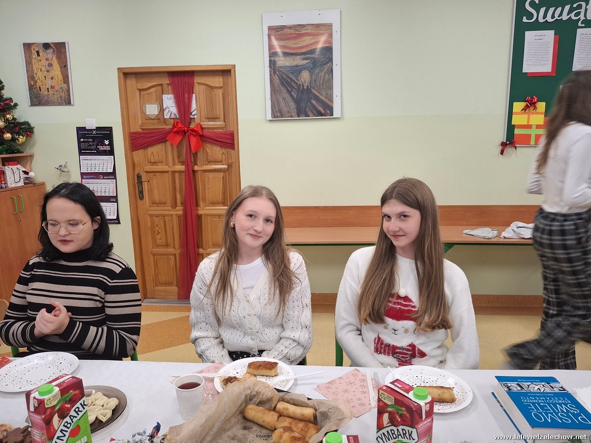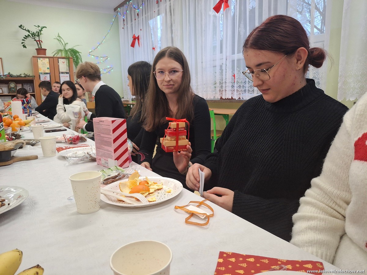 Już po raz drugi w liceum w odświętnej radosnej atmosferze klasa 2c spotyka się aby złożyć sobie życzenia, połamać się opłatkiem i przy wigilijnych potrawach świętować zbliżające się Boże Narodzenie. Gośćmi tegorocznej wigilii klasowej były: pani Dyrektor Sylwia Tomaszek i pani pedagog Anna Majewska oraz ,,nieoczekiwany gość” - Dominik. Święty Mikołaj obdarował wszystkich prezentami a z sali do godzin wieczornych dobiegał radosny szum i śpiew kolęd…