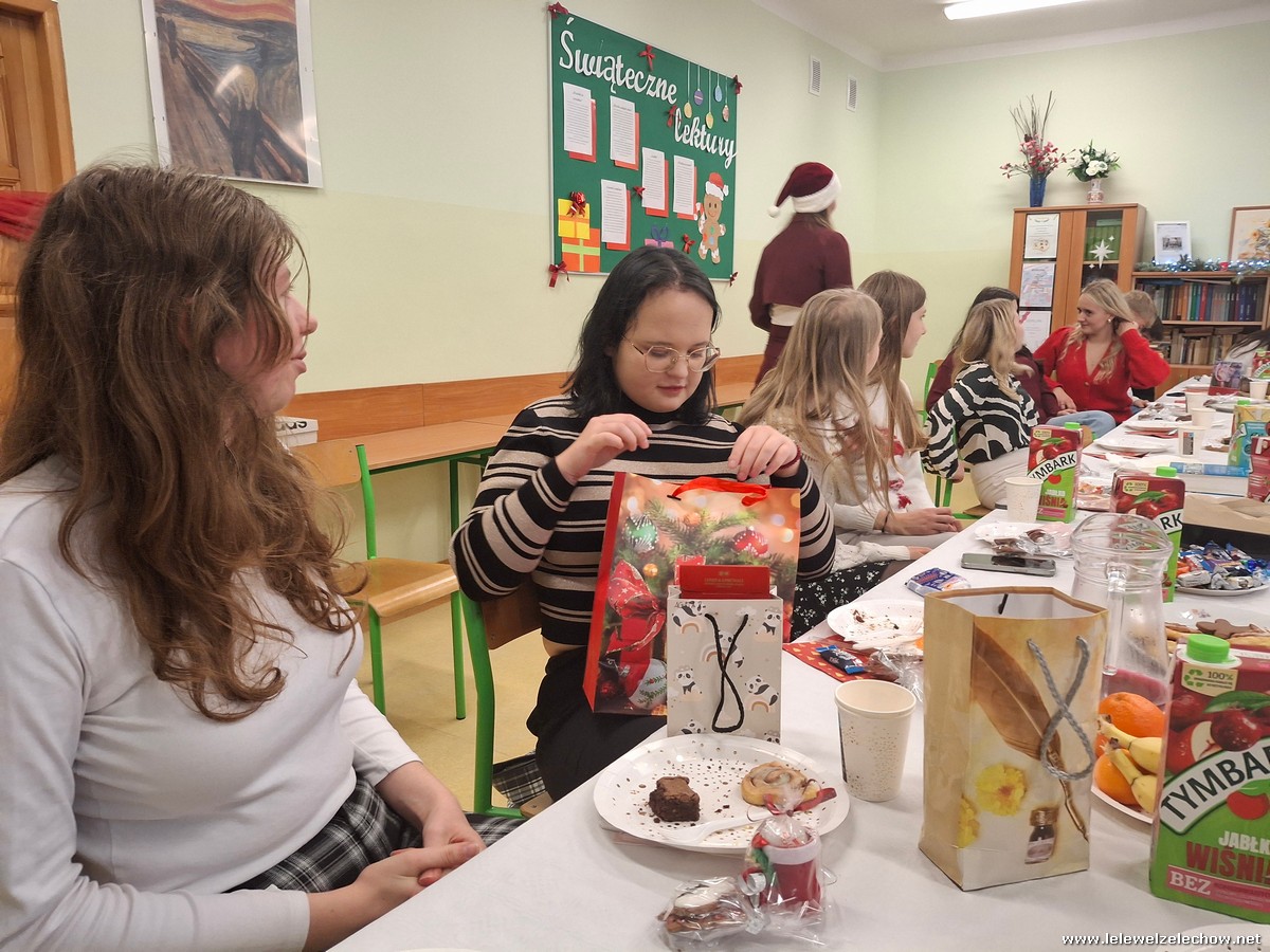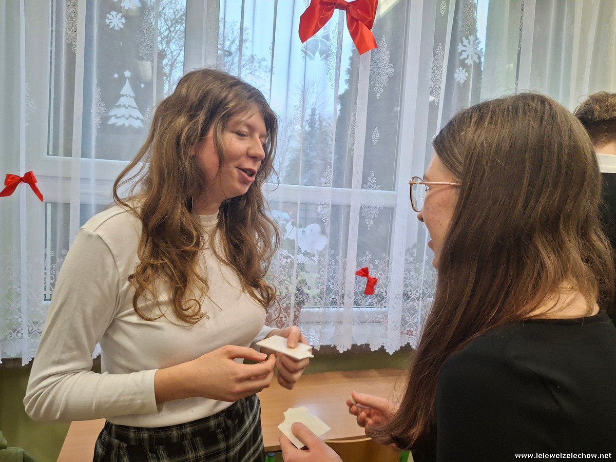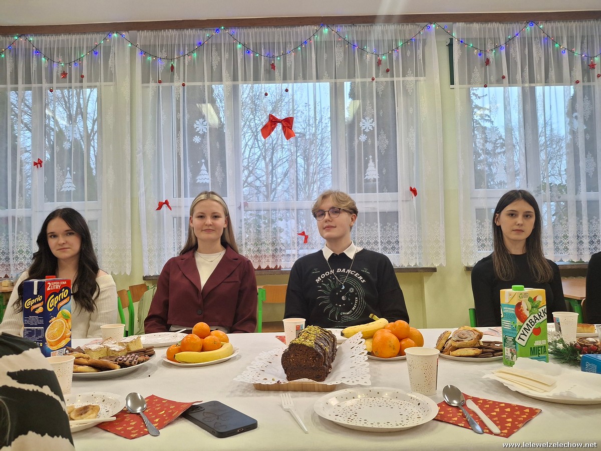 Już po raz drugi w liceum w odświętnej radosnej atmosferze klasa 2c spotyka się aby złożyć sobie życzenia, połamać się opłatkiem i przy wigilijnych potrawach świętować zbliżające się Boże Narodzenie. Gośćmi tegorocznej wigilii klasowej były: pani Dyrektor Sylwia Tomaszek i pani pedagog Anna Majewska oraz ,,nieoczekiwany gość” - Dominik. Święty Mikołaj obdarował wszystkich prezentami a z sali do godzin wieczornych dobiegał radosny szum i śpiew kolęd…