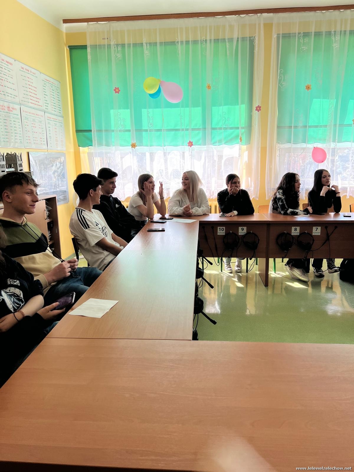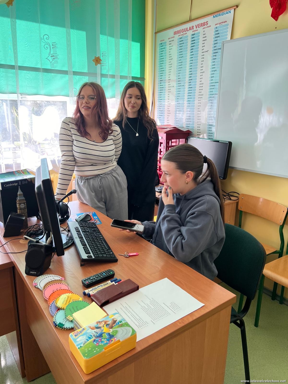 W środowe popołudnie (2 kwietnia) goście spędzili z Panią Profesor Anną Mosior na lekcji języka angielskiego, na której wraz z naszymi uczniami byli aktywizowani grami i quizami oraz prezentowali wcześniej przygotowane multimedialne informacje nt. kultur swoich krajów.