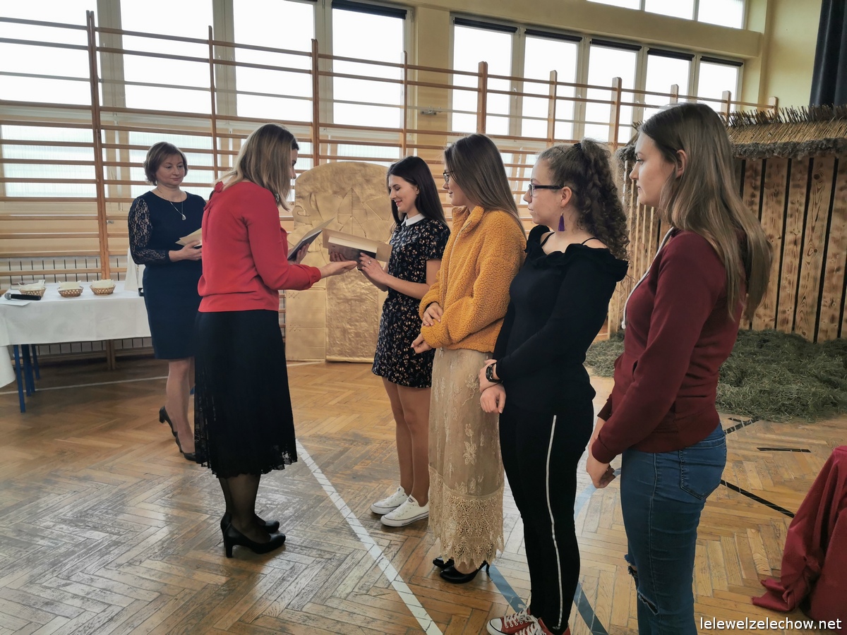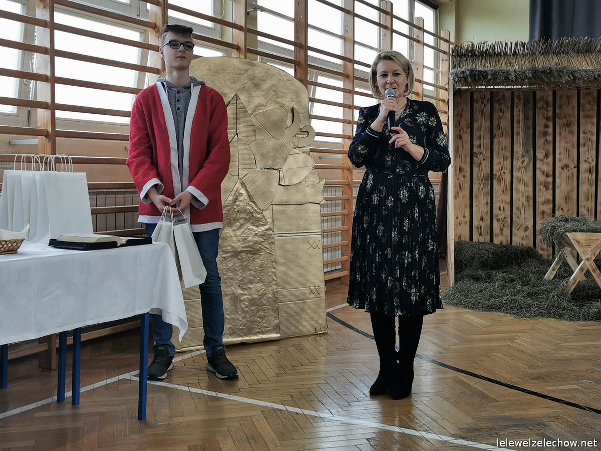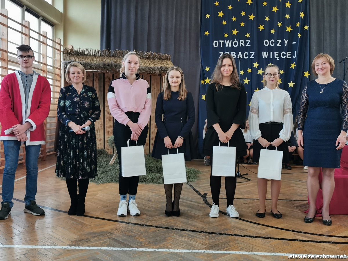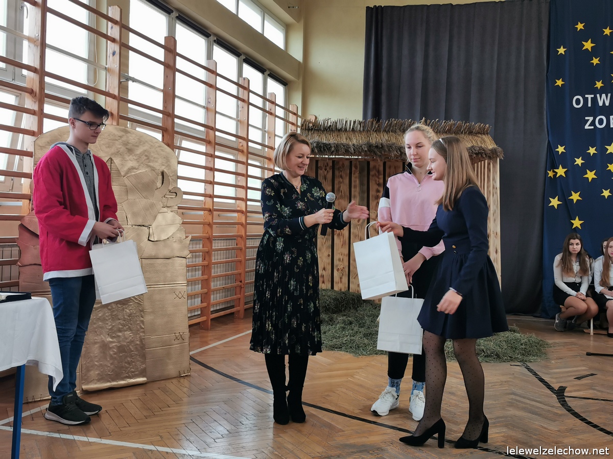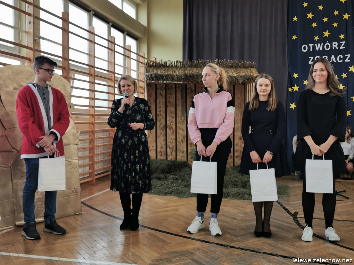 Wręczenie nagród w konkursach: szkolnym ortograficznym, Samorządu Uczniowskiego na najpiękniejszy stroik i dekorację bożonarodzeniową klasy oraz za udział w ogólnopolskim konkursie ,,Mistrzowie i patrioci".