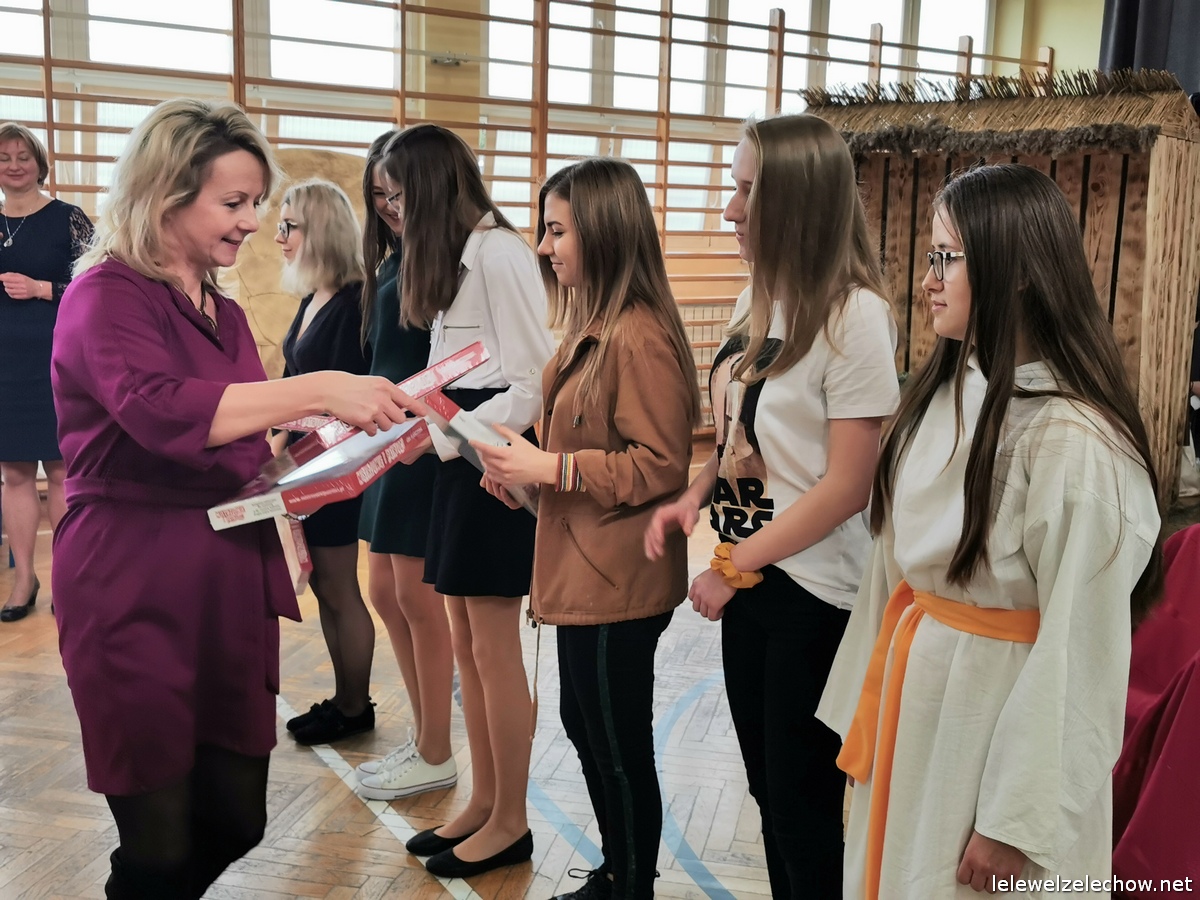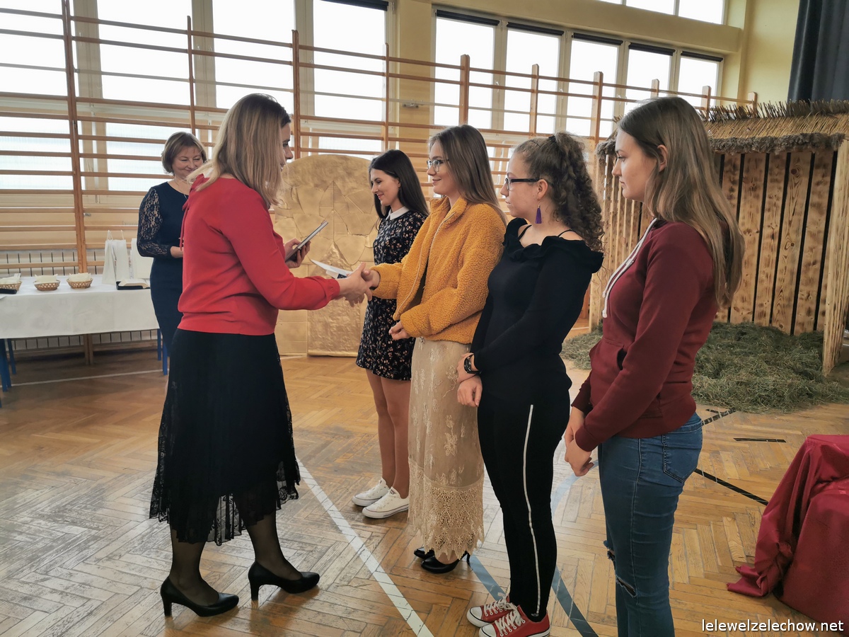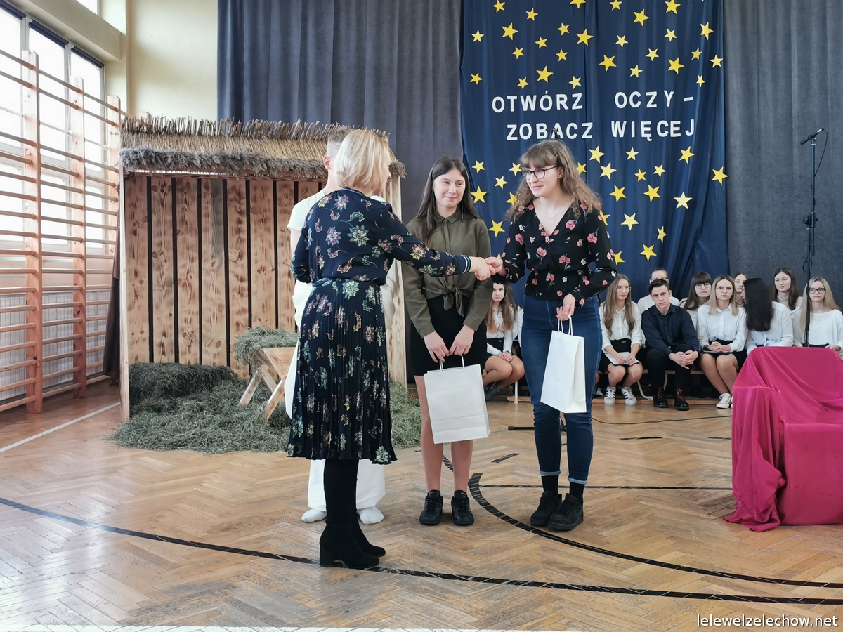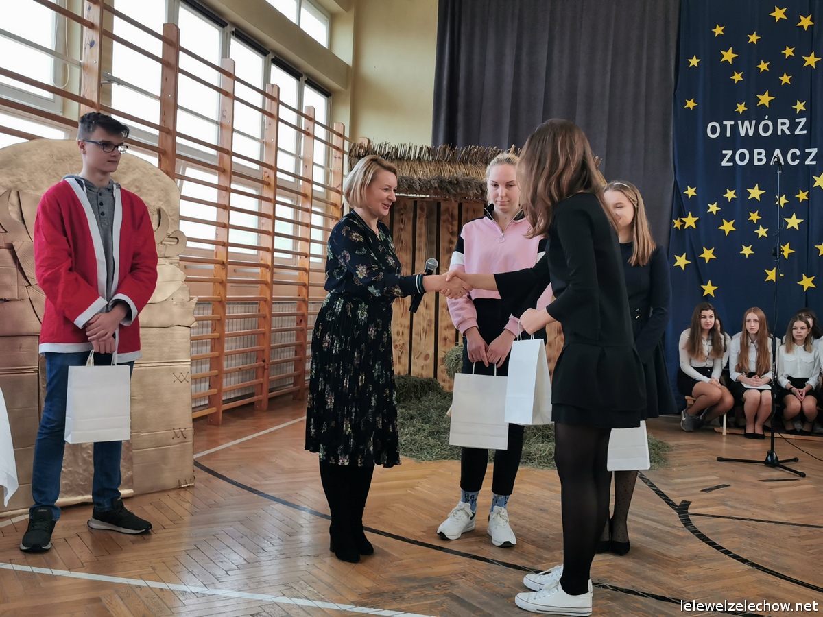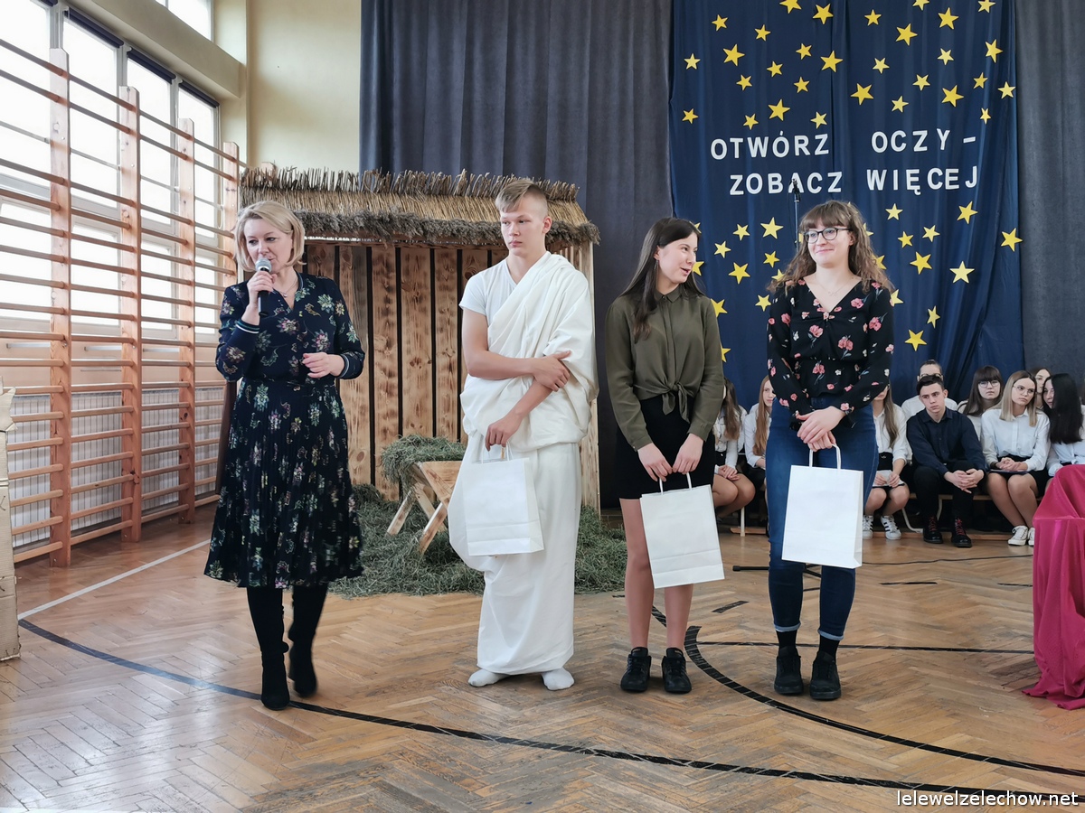 Wręczenie nagród w konkursach: szkolnym ortograficznym, Samorządu Uczniowskiego na najpiękniejszy stroik i dekorację bożonarodzeniową klasy oraz za udział w ogólnopolskim konkursie ,,Mistrzowie i patrioci".