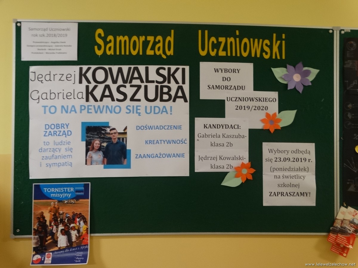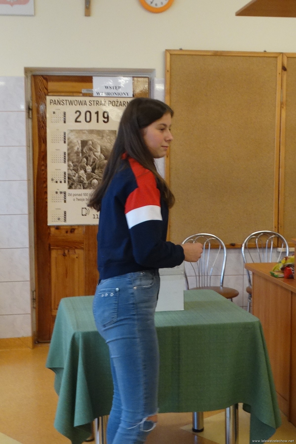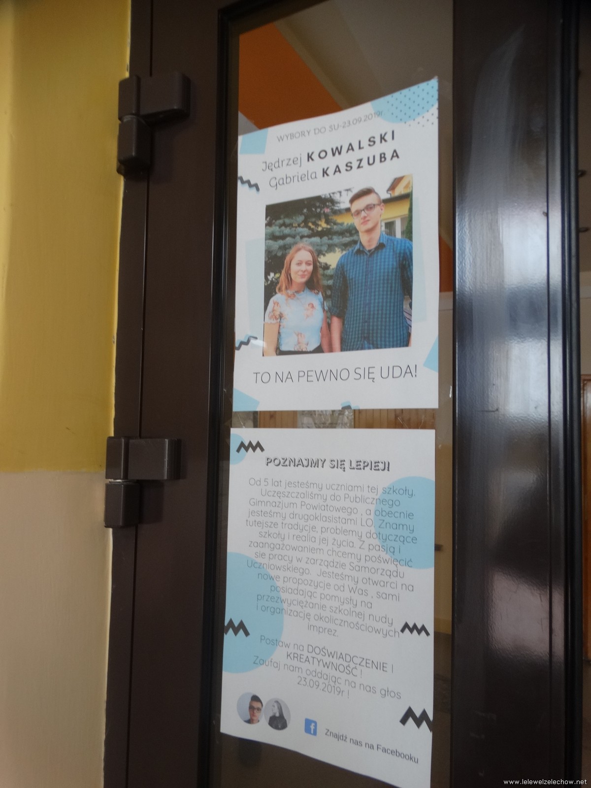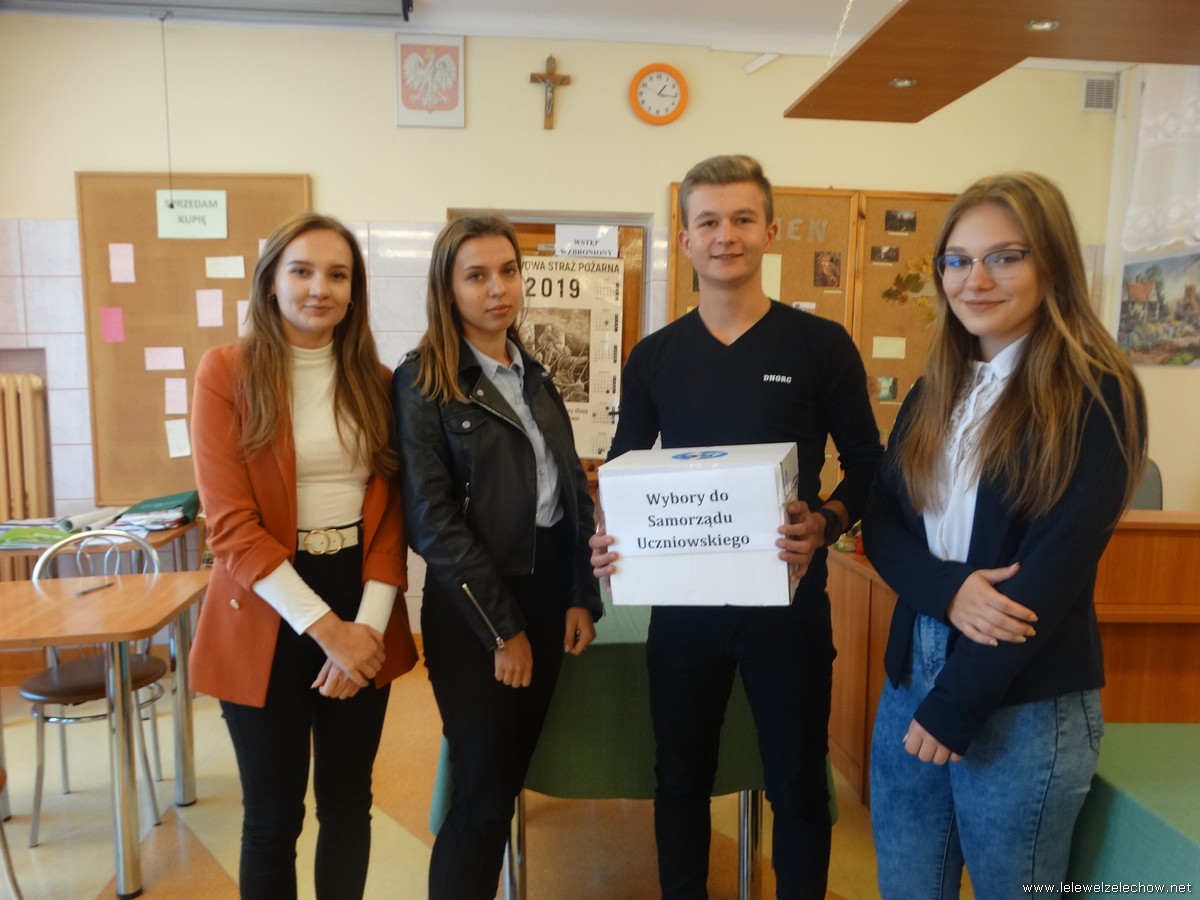 23 września 2019 r. Komisja w składzie: Angelika Siwek, Weronika Tratkiewicz, Anna Frączek i Michał Grzyb, przeprowadziła wybory do SU. Uczniowie mogli zagłosować w świetlicy szkolnej na każdej przerwie. W wyniku głosowania, przy frekwencji 50 %, przewodniczącą SU na rok szkolny została Gabriela Kaszuba a zastępcą - Jędrzej Kowalski, oboje z klasy II b. Byli to w tym roku jedyni kandydaci, którzy w kampanii zapowiadali zgodna współpracę. Gra toczyła się zatem o to, które z nich zajmie jaką funkcję. Gratulujemy wyniku i życzymy pomyślnej pracy! Dziękujemy ubiegłorocznemu Zarządowi, który niniejszym kończy pracę, a więc Angelice, Weronice, Ani i Michałowi :) Jednocześnie informujemy, że opiekunem SU pozostała p. Urszula Kobielus.