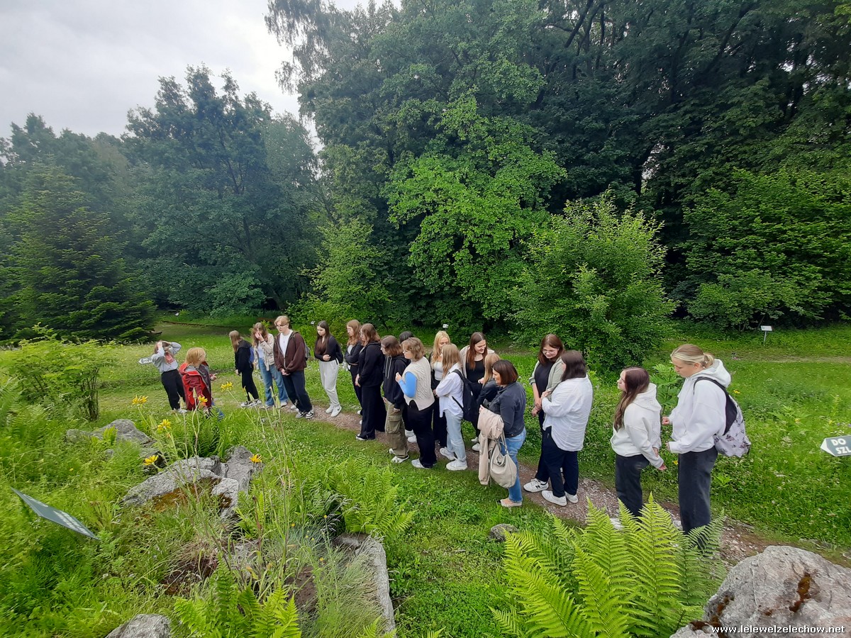 Badania pokazują, że osoby, które mają dobrą relację z naturą, stają się szczęśliwsze. Czas spędzony wśród przyrody sprawia, że czujemy radość, spokój, wyciszamy emocje, wzmacniamy naszą koncentrację i kreatywność. Potwierdzają to wrażenia, jakie mieliśmy po wycieczce do Ogrodu Botanicznego PAN w Powsinie. Klasy realizujące rozszerzenie z biologii (Ib i IIb), pod opieką pani Joanny Baranieckiej, pani Anetty Dziak i pani Magdaleny Woźniak, 4 czerwca 2024 roku miały możliwość poznać to niezwykłe miejsce. Ogród powstał w 1974 roku i od tego momentu zaczął się proces nabywania gruntów i zagospodarowywania ich, czyli sadzenia, pielenia i rozwijania. W czasie dwugodzinnego zwiedzania wędrowaliśmy szlakami poprzez wzgórki i skaliste wzniesienia, gdzie podziwialiśmy ekspozycję roślinności górskiej, zachwycaliśmy się kolekcją roślin bylinowych, drzewiastych, obserwowaliśmy mało znane gatunki drzew, krzewów i kwiatów, które w tutejszych warunkach zachwycają wielkością i potęgą. Przewodnicy zwracali naszą uwagę na to, jak niesamowicie rośliny potrafią funkcjonować obok siebie i dostosowywać się do często niełatwych warunków życia. Zajrzeliśmy także do oranżerii, w której znajdowało się wiele pięknych, bujnych roślin z klimatu tropikalnego i subtropikalnego. Ogromne wrażenie zrobiła na nas także narodowa kolekcja odmian uprawnych róż, które właśnie w tym czasie kwitły. Po wizycie w Powsinie zaplanowany mieliśmy pobyt w centrum handlowym Westfield Arkadia. Tu obejrzeliśmy oparty na faktach film „Jedno życie” z Anthonym Hopkinsem w roli głównej. Bohater, Nicholas Winton, tuż przed II wojną światową ocalił ponad 600 dzieci z rąk hitlerowców. Przedstawione zdarzenia bardzo nas poruszyły i zmusiły do refleksji na temat tego, jak historia wpływa na los człowieka. Do Żelechowa wróciliśmy przed godziną dwudziestą. Pogoda nam dopisała, humory również. Możemy więc myśleć o kolejnych klasowych wyjazdach. A ogród w Powsinie bardzo polecamy na wakacyjne wyjazdy. Jak zapewniał nas pani przewodnik – o każdej roku jest tu pięknie i zawsze czekają zachwycające rośliny do podziwiania.