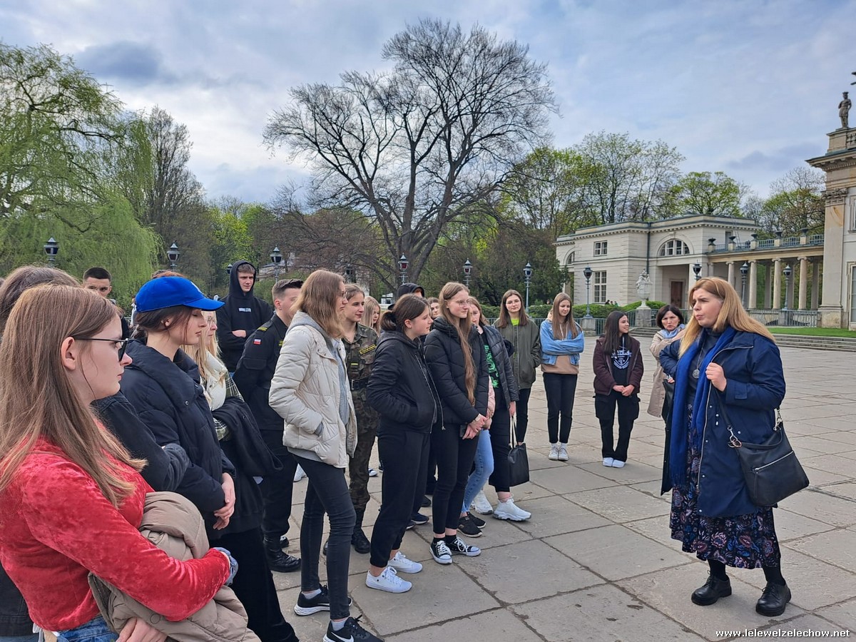 Po intensywnym zwiedzaniu był czas na posiłek oraz relaks na łonie natury. Uczniowie wraz z opiekunkami: panią Sylwią Tomaszek, panią Anettą Dziak, panią Urszulą Kobielus, panią Lidią Soćko oraz panią Anną Włodarczyk odwiedzili Łazienki Królewski i sprawdzili, czy w Warszawie już na dobre zagościła wiosna. Pogoda okazała się na tyle łaskawa, że z przyjemnością przespacerowaliśmy się po parku i popatrzyliśmy na łazienkowskie zabytki. Wycieczka naprawdę się udała.