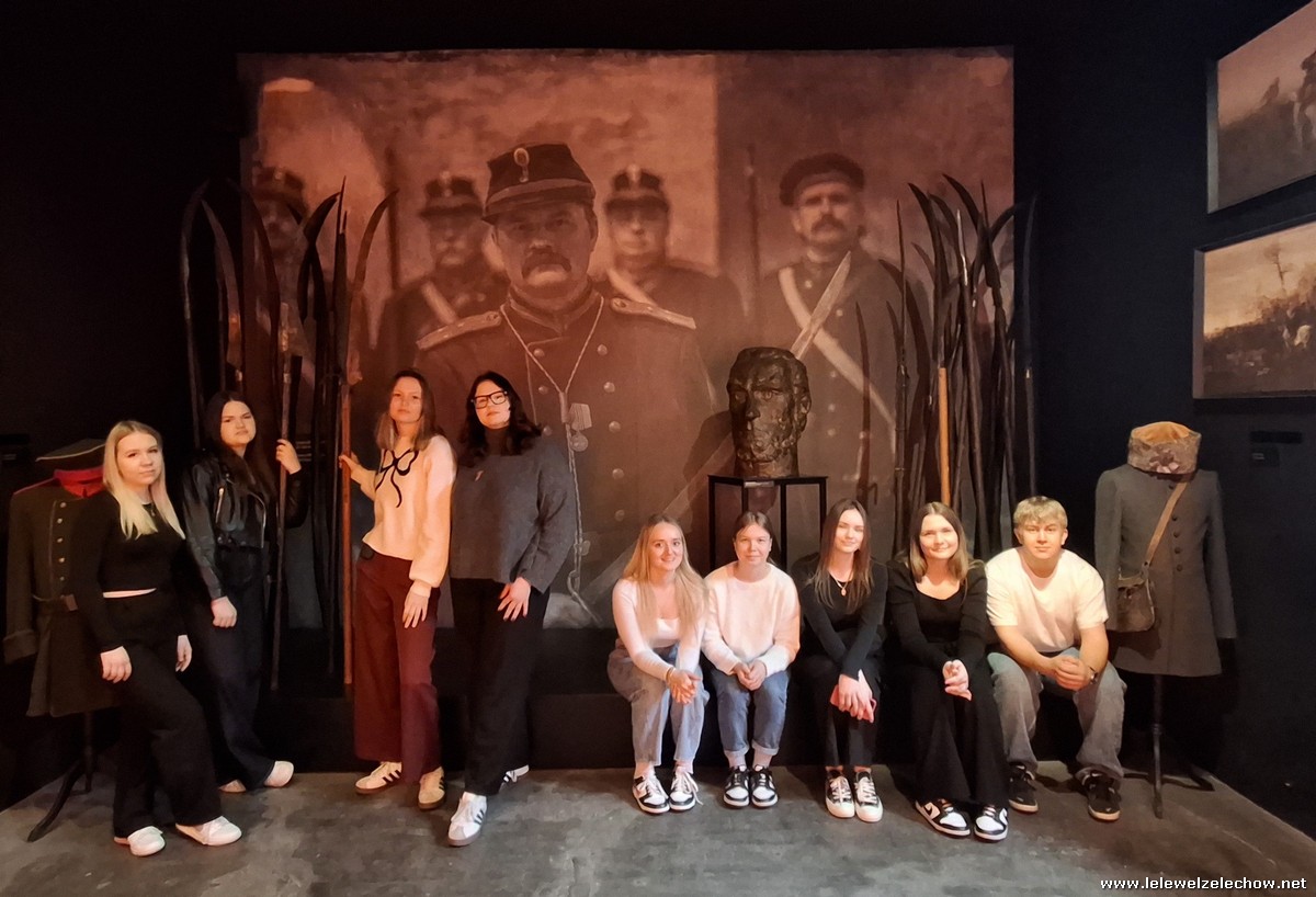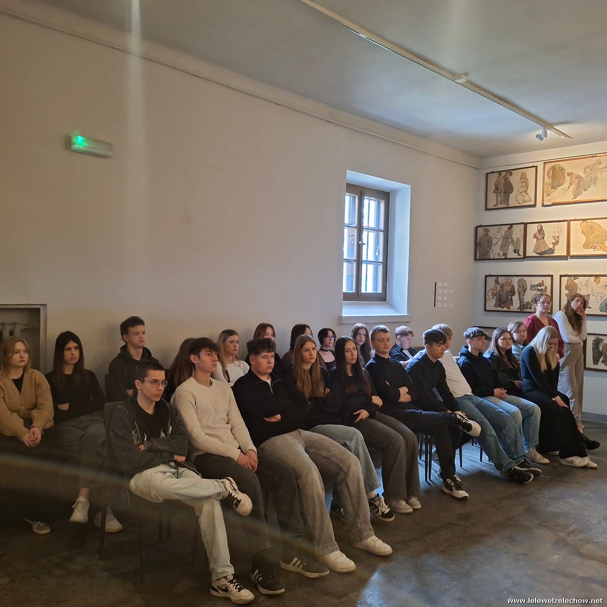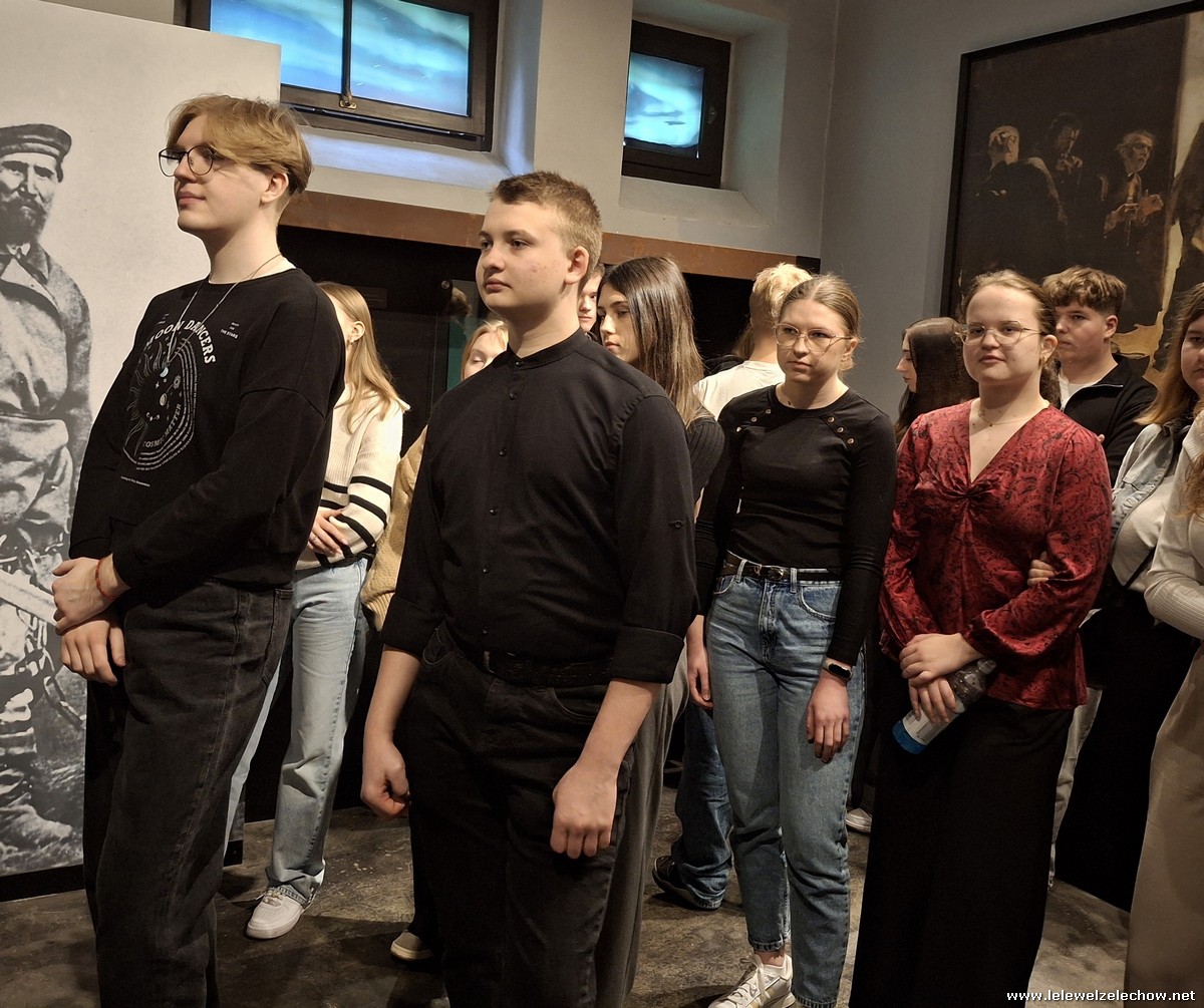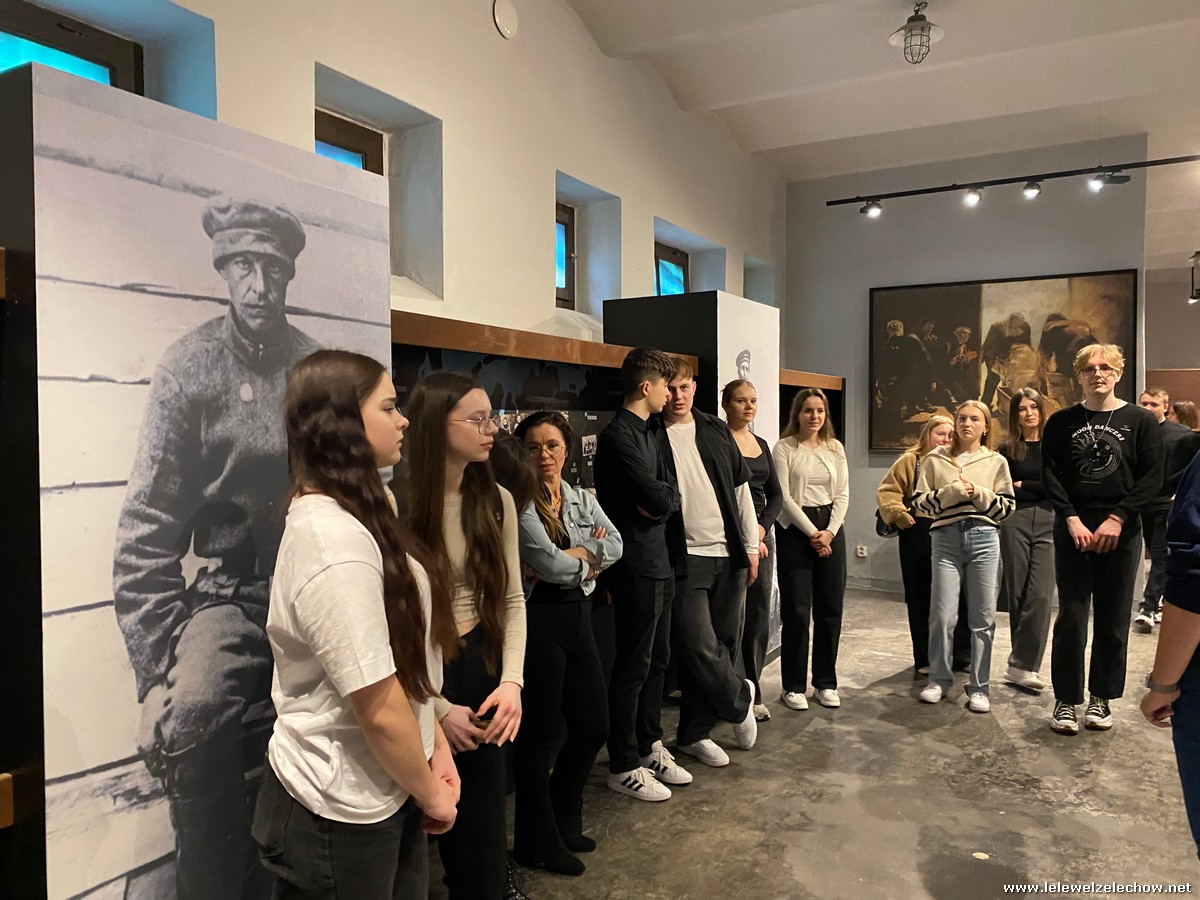 Mogliśmy obejrzeć zachowane wnętrza z epoki, czyli cele więzienne z różnych okresów, w tym celę śmierci z czasów rewolucji 1905 r., salę śledczą czy pomieszczenia dla oczekujących na przesłuchania. Byliśmy m. in w celi Romualda Traugutta, księdza Piotra Ściegiennego, Józefa Piłsudskiego. Przewodniczka przybliżyła nam sylwetki przetrzymywanych tu więźniów politycznych, przypomniała życiorys Romualda Traugutta i okoliczności śmierci ostatniego dyktatora powstania styczniowego, który razem z innymi więźniami został stracony na stokach Cytadeli. Usłyszeliśmy też interesującą historię związaną z przetrzymywanym tu marszałkiem Piłsudskim. Ogromne wrażenie zrobiła na nas wystawa obrazów „kronikarza syberyjskiej katorgi”, czyli Aleksandra Sochaczewskiego. On również więziony był w Cytadeli, a po wybuchu powstania styczniowego został skazany na 20 lat pobytu na Syberii. Swoje życie poświęcił tworzeniu przejmujących dzieł dokumentujących katorgę i pobyt na zsyłce. Wszystkie obrazy były niezwykłe, jednak najbardziej poruszyło nas ogromnych rozmiarów płótno „Pożegnanie Europy”, na którym malarz uwiecznił szereg znanych zesłańców, w tym siebie – postać stojącą przy słupie granicznym z prawej strony patrzącą na słup.
