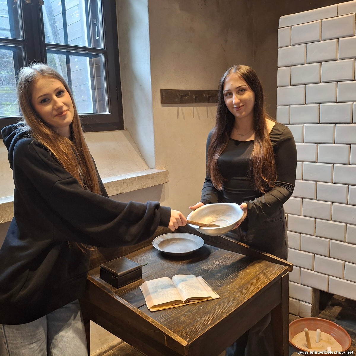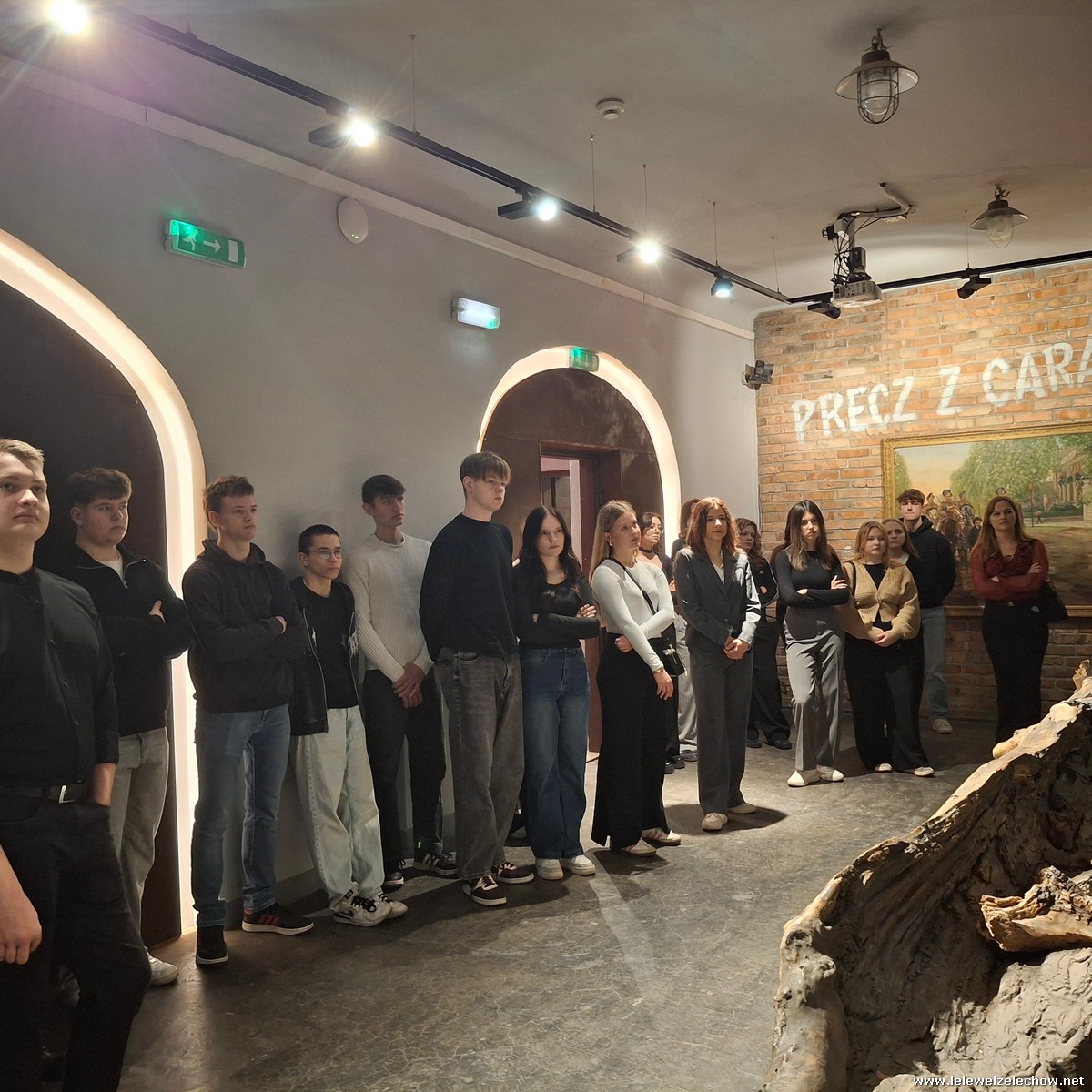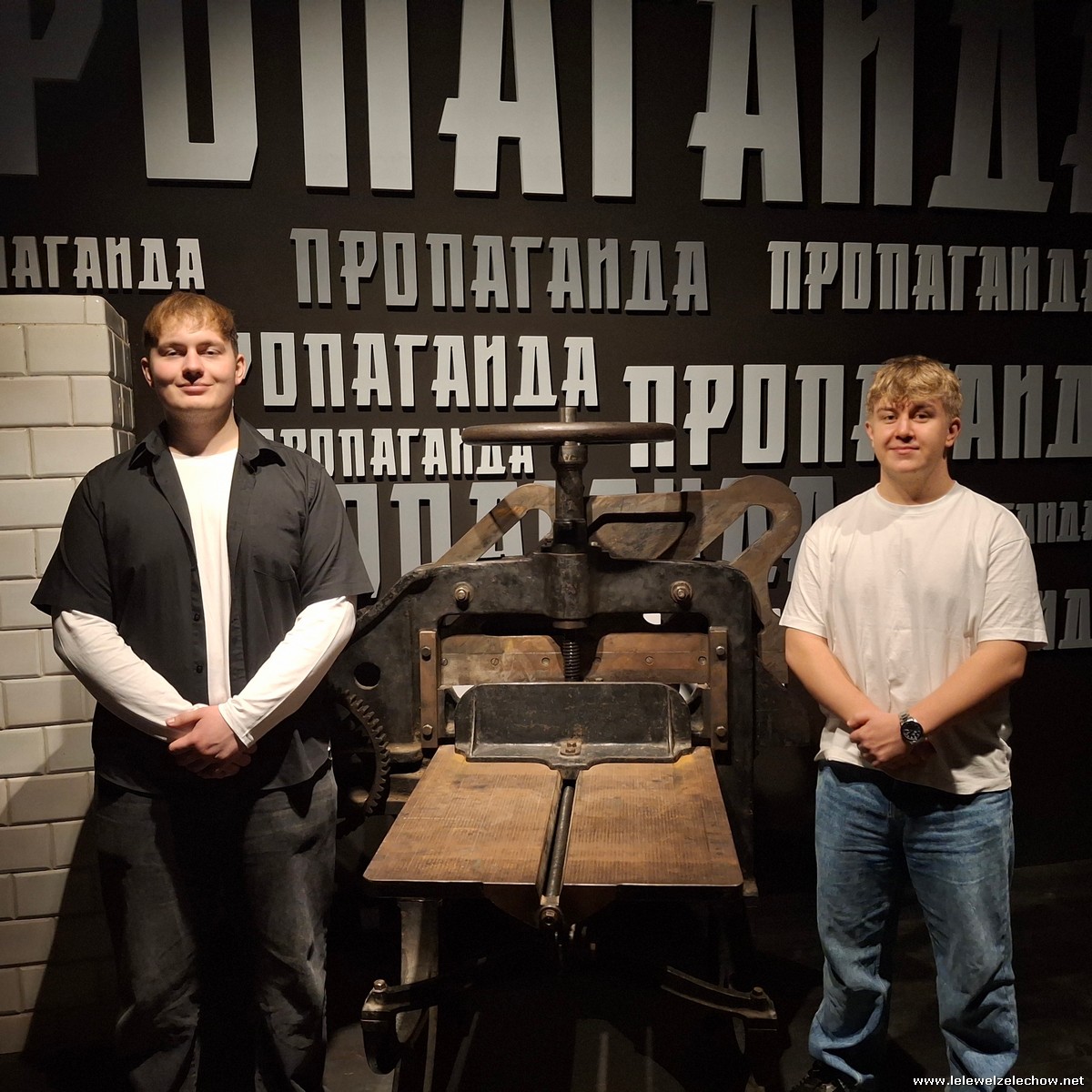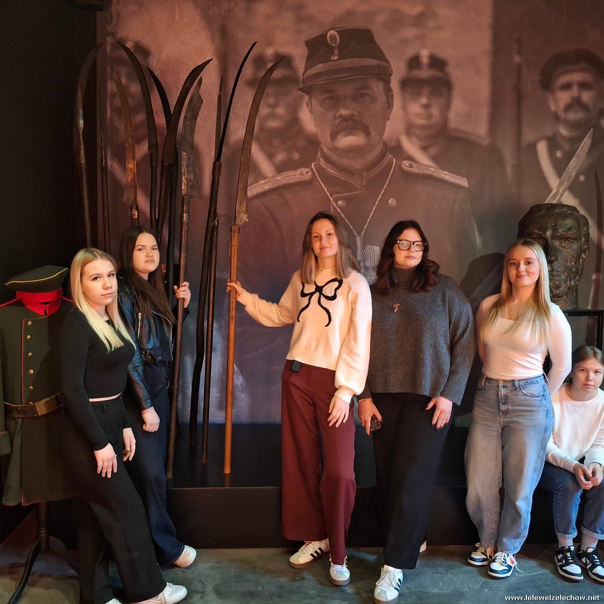 Mogliśmy obejrzeć zachowane wnętrza z epoki, czyli cele więzienne z różnych okresów, w tym celę śmierci z czasów rewolucji 1905 r., salę śledczą czy pomieszczenia dla oczekujących na przesłuchania. Byliśmy m. in w celi Romualda Traugutta, księdza Piotra Ściegiennego, Józefa Piłsudskiego. Przewodniczka przybliżyła nam sylwetki przetrzymywanych tu więźniów politycznych, przypomniała życiorys Romualda Traugutta i okoliczności śmierci ostatniego dyktatora powstania styczniowego, który razem z innymi więźniami został stracony na stokach Cytadeli. Usłyszeliśmy też interesującą historię związaną z przetrzymywanym tu marszałkiem Piłsudskim. Ogromne wrażenie zrobiła na nas wystawa obrazów „kronikarza syberyjskiej katorgi”, czyli Aleksandra Sochaczewskiego. On również więziony był w Cytadeli, a po wybuchu powstania styczniowego został skazany na 20 lat pobytu na Syberii. Swoje życie poświęcił tworzeniu przejmujących dzieł dokumentujących katorgę i pobyt na zsyłce. Wszystkie obrazy były niezwykłe, jednak najbardziej poruszyło nas ogromnych rozmiarów płótno „Pożegnanie Europy”, na którym malarz uwiecznił szereg znanych zesłańców, w tym siebie – postać stojącą przy słupie granicznym z prawej strony patrzącą na słup.