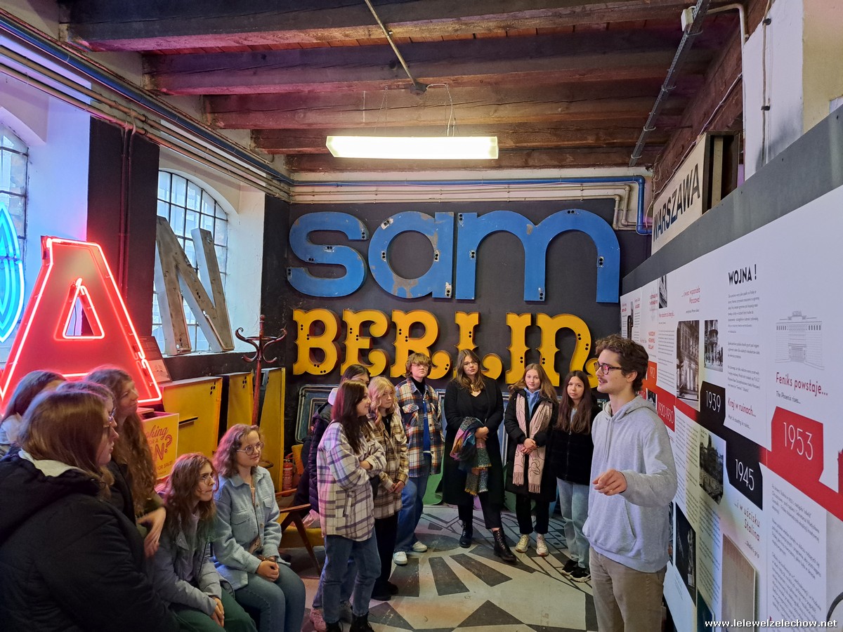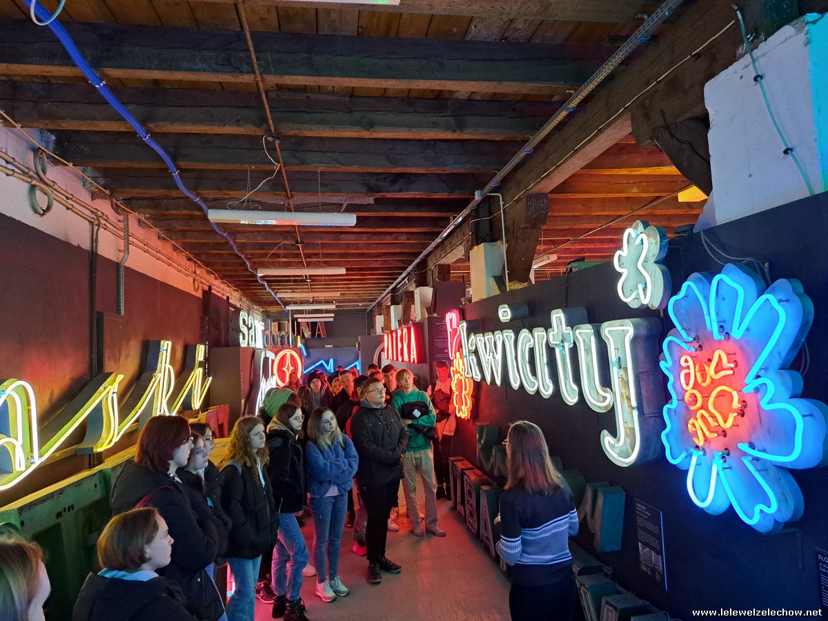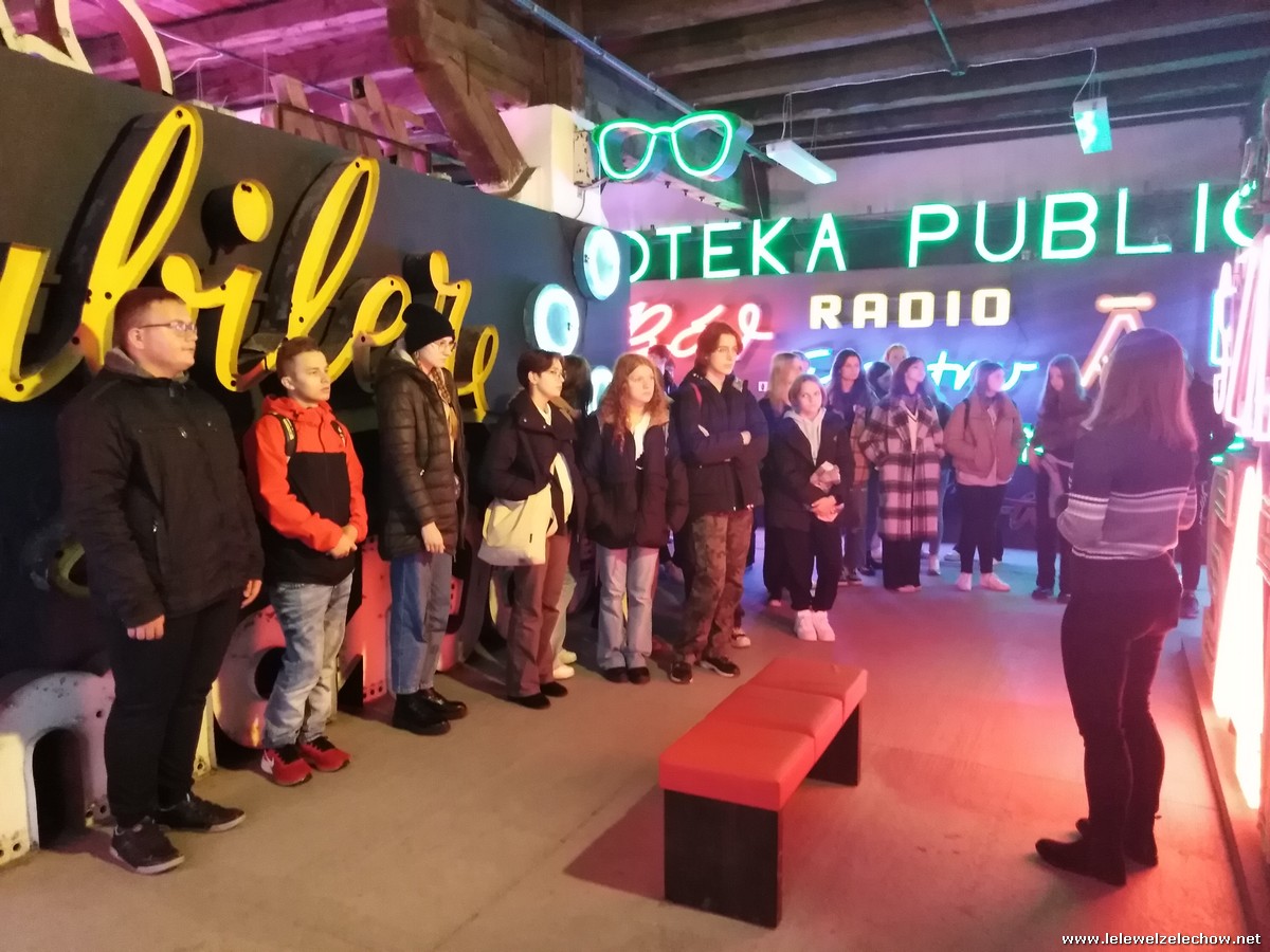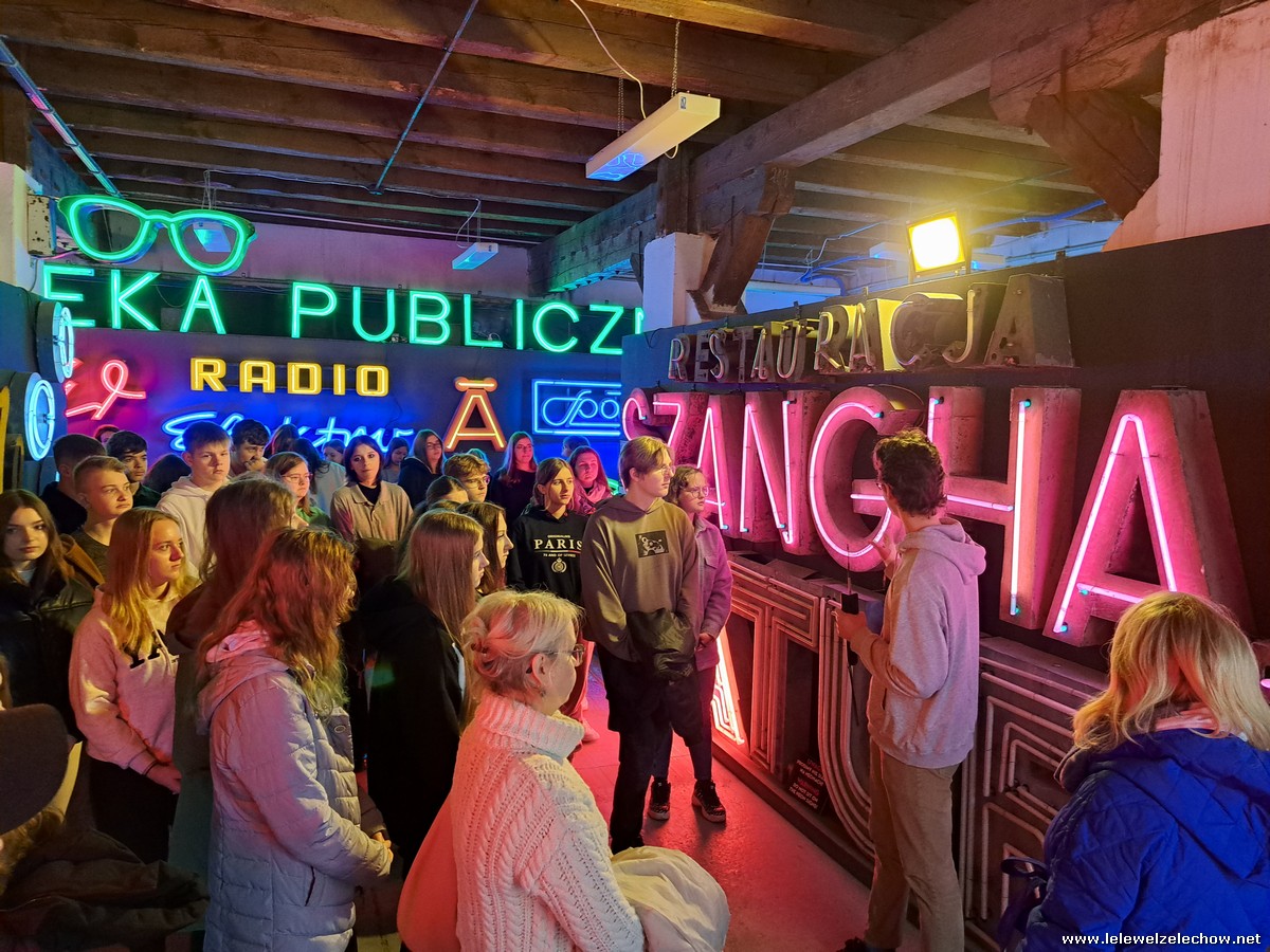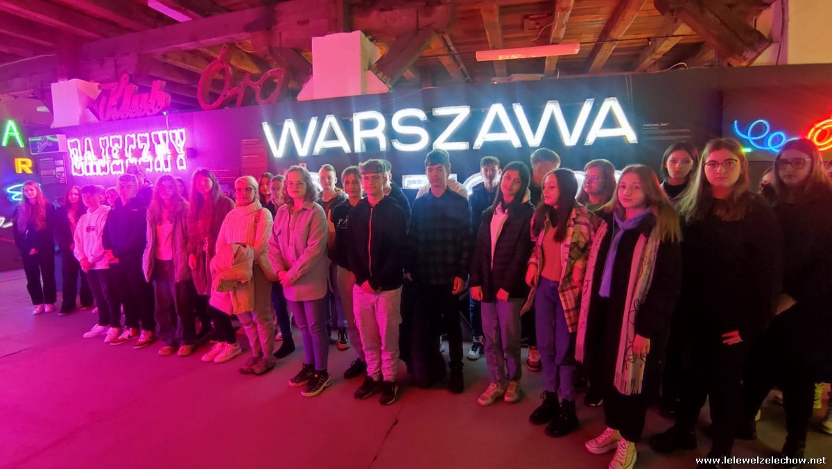 16 listopada 2022 roku klasy pierwsze naszego liceum uczestniczyły w wycieczce integracyjnej do Warszawy. Wyjazd dofinansowany był z programu „Poznaj Polskę”, który promuje odkrywanie bogactwa kulturalnego, historycznego i przyrodniczego naszego kraju. Z Żelechowa wyjechaliśmy o godzinie siódmej i dwie godziny później zwiedzaliśmy Muzeum Neonów. Mogliśmy obejrzeć powojenne reklamy świetlne i poznać ich historię. W tym miejscu do naszych dwóch grup dołączyli przewodnicy, którzy towarzyszyli nam w aktywnym zwiedzaniu stolicy. Z Pragi kierowaliśmy się ku centrum Warszawy. Kolejnym punktem był spacer po Stary Mieście. Przewodnicy oprowadzali nas po najciekawszych i najbardziej charakterystycznych miejscach, zaglądaliśmy do kościołów, poznawaliśmy historię ważnych osób, zwracaliśmy uwagę na liczne miejsca upamiętniające często tragiczne zdarzenia z przeszłości Warszawy. Byliśmy świadkami szykowania świątecznych dekoracji i ogromnej choinki na placu Zamkowym. Po odpoczynku i przepysznym posiłku w pizzerii Da Grasso przemieściliśmy się do Łazienek Królewskich. Pogoda nie sprzyjała zwiedzaniu, mimo tego liczne informacje przekazywane przez przewodników pozwoliły nam dostrzec niezwykłość tego miejsca. Wrażenie zrobiły na nas gromady pawi spacerujących obok nas, mewy i kaczki przemieszczające się w pobliżu wody otaczającej pałac na Wyspie. Ostatnim punktem wycieczki było Muzeum Pałacu Króla Jana III w Wilanowie i zapierające dech w piersiach iluminacje w Ogrodzie Światła.