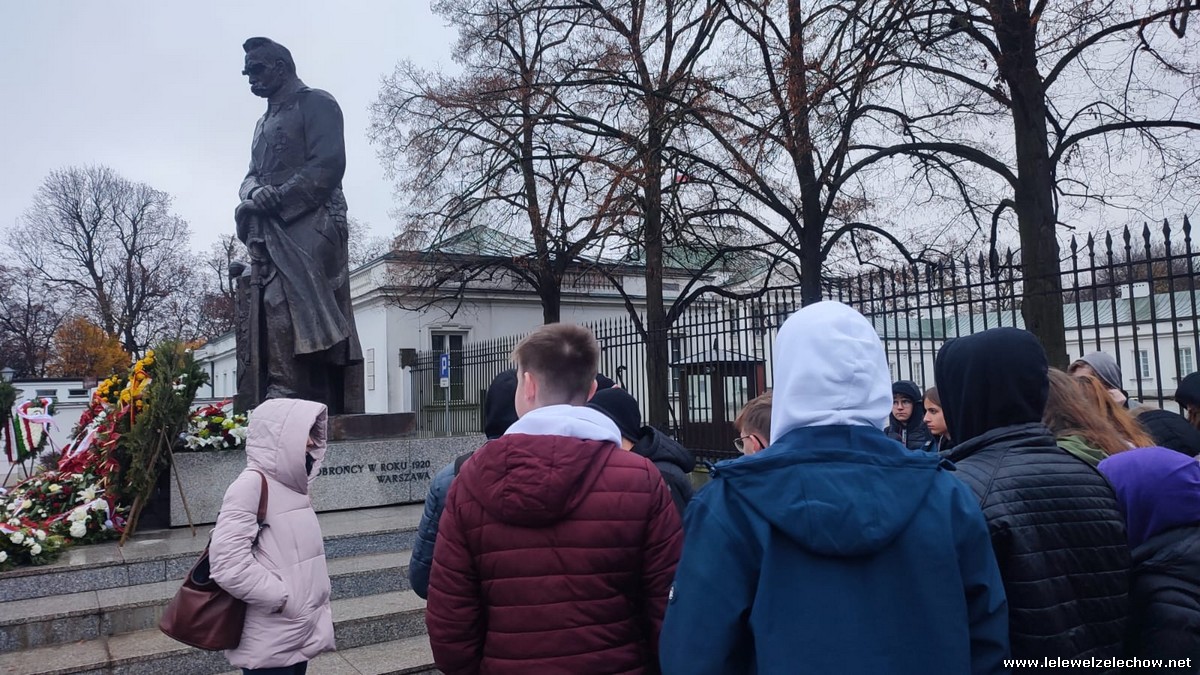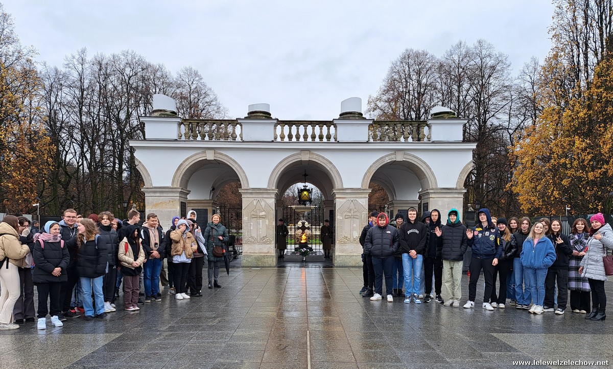 Do Żelechowa wróciliśmy po godzinie dziewiętnastej. W naszej pamięci na pewno zostanie wiele wspaniałych zakątków stolicy, które w połączeniu z historią przedstawioną przez przewodników, zostały przez nas odkryte na nowo. Topografia miasta, ułożenie kamienic, ważne miejsca, pomniki, tablice upamiętniające istotne wydarzenia, Belweder, Sąd Najwyższy, Kaplica Katyńska w Katedrze Wojska Polskiego, więzienie na Rakowieckiej, mieszkanie, w którym ukrywał się Władysław Szpilman, pomnik Józefa Piłsudskiego, Pomnik Powstania Warszawskiego, ambasady – to tylko niektóre z miejsc i atrakcji, na które dziś zwróciliśmy uwagę . W trakcie całodniowego wyjazdu opiekę nad nami sprawowała pani dyrektor Sylwia Tomaszek, pani Joanna Baraniecka, pani Anna Majewska, oraz wychowawczynie klas pierwszych: pani Agnieszka Osial, pani Lidia Soćko i pani Magdalena Woźniak. Wycieczkę, mimo listopadowej pogody, na pewno zapamiętamy jako bardzo udaną, wypełnioną atrakcjami i wspólnymi przeżyciami.