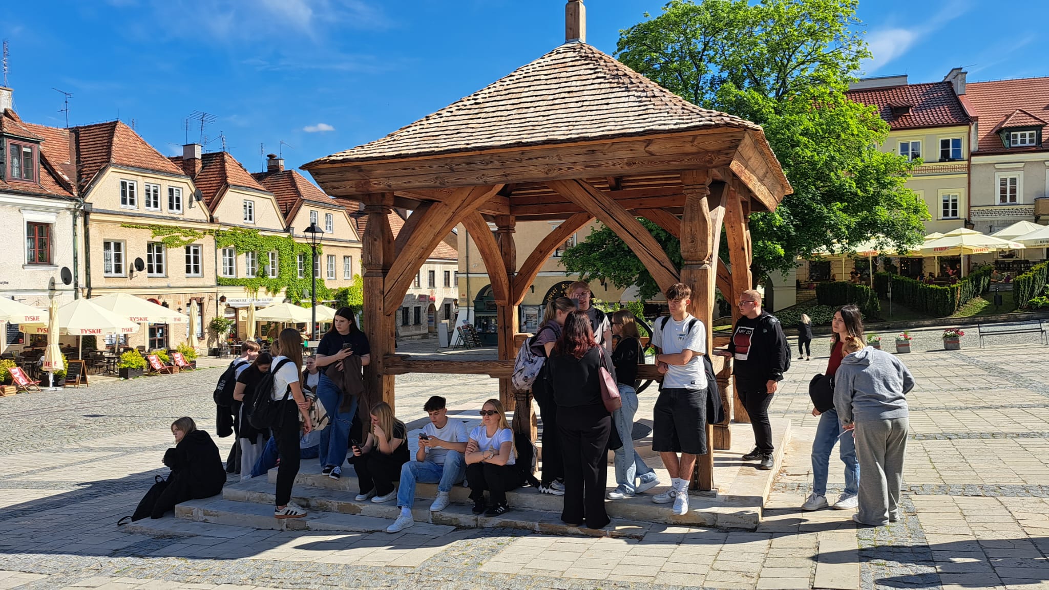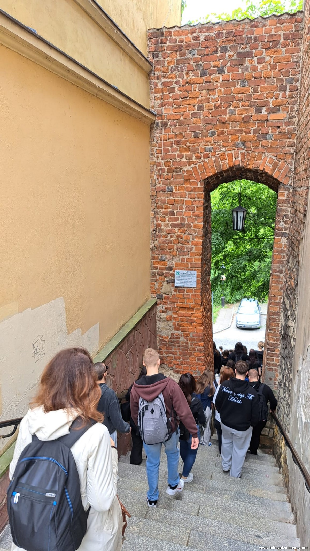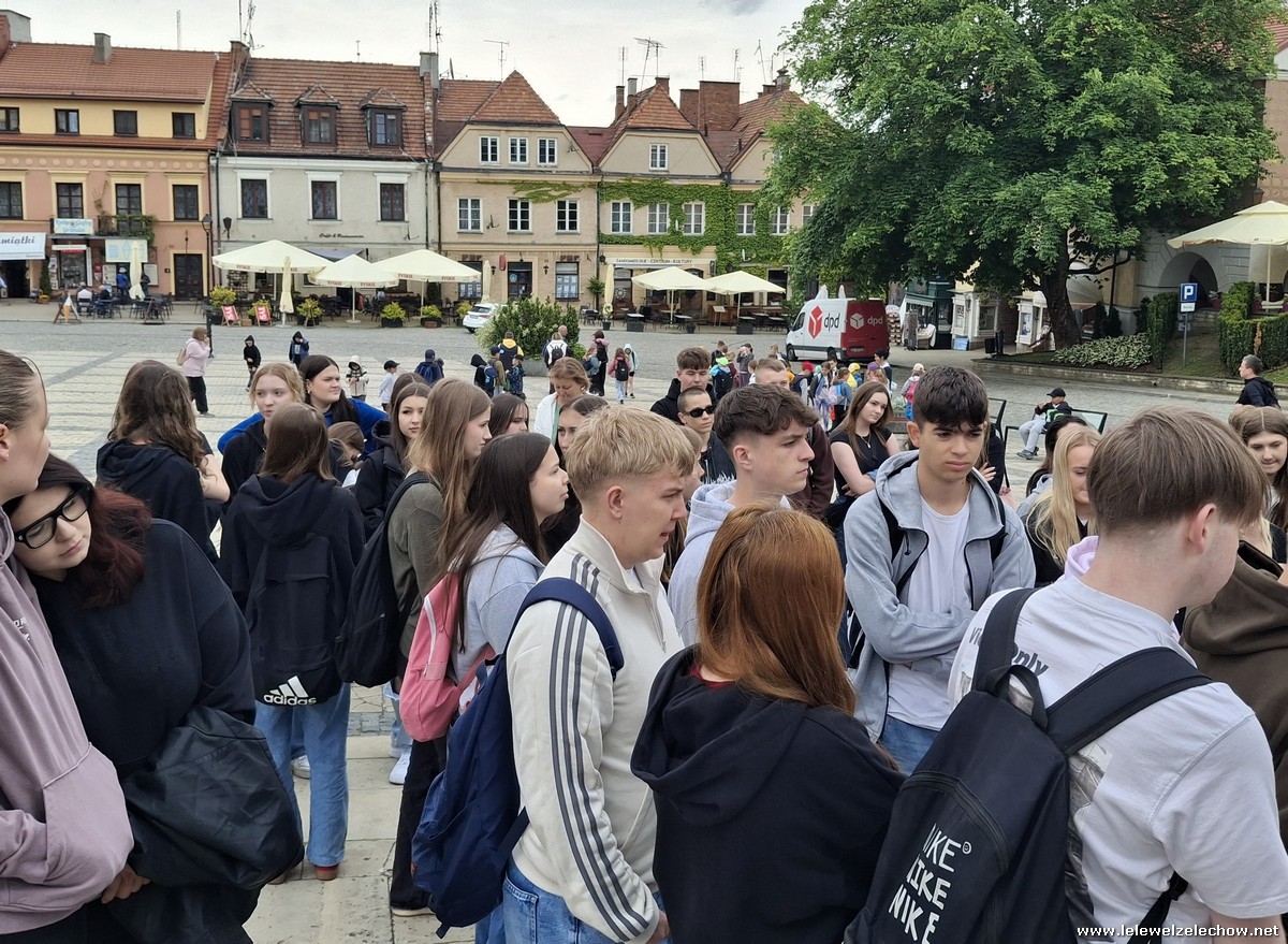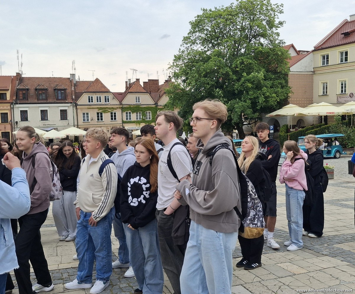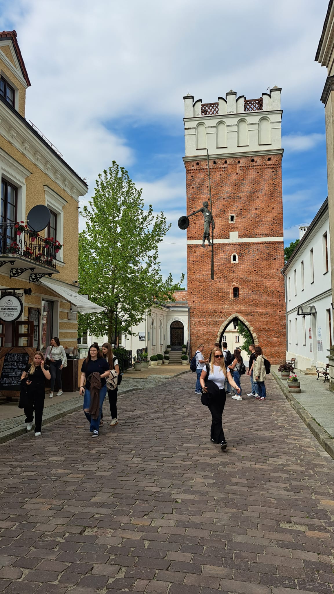 „Miejscowość ta jest nadzwyczajnie piękna i przyjemna” – pisał o Sandomierzu w 1585 roku Stanisław Sarnicki. Uczniowie klas trzecich mogli przekonać się, czy nic się nie zmieniło od XVI wieku. We wtorek 27 maja o godzinie 7:30 pod opieką pani dyrektor Sylwii Tomaszek, pani Anny Majewskiej i pani Magdaleny Woźniak wyruszyliśmy na wycieczkę, aby złapać oddech przed intensywnym czasem zbliżającego się końca roku szkolnego. Pod ratuszem spotkaliśmy się z panią przewodnik, która już na sandomierskim rynku przybliżyła nam historię miasta i znajdujących się tu zabytków. Następnie skierowaliśmy się ku Podziemnej Trasie Turystycznej. Tu, w podziemiach Starego Miasta, mieściły się dawniej kupieckie piwnice i składy. Długość tej trasy liczy 470 metrów. Poznaliśmy legendę o Halinie Krępiance, która poświęciła swoje życie, by uratować Sandomierz przed atakiem Tatarów, widzieliśmy salę katowską, wystawę porcelany AS Ćmielów, wystawę poświęconą winiarstwu sandomierskiemu oraz narzędzia związane z pracą górników. Kolejnym punktem była Zbrojownia Rycerska, w której mogliśmy zobaczyć, a nawet przymierzyć zbroje rycerskie, wziąć do ręki m. in. miecz, kuszę, halabardę. Spacerując po mieście, przeszliśmy przez Ucho Igielne, głaskaliśmy „kamień optymizmu” czyli krzemień pasiasty, którego światową stolicą jest właśnie Ziemia Sandomierska. Bardzo relaksującym punktem wycieczki był półgodzinny rejs statkiem „Syrenka” po Wiśle. W czasie jego trwania mogliśmy spojrzeć na miasto z zupełnie innej perspektywy. Wspólne zwiedzanie z panią przewodnik zakończyliśmy wejściem na Bramę Opatowską, gdzie znajduje się punkt widokowy na Stare Miasto w Sandomierzu. Mieliśmy jeszcze trochę czasu wolnego na odpoczynek i posilenie się po dniu pełnym wrażeń. Wycieczka była naprawdę udana, na długo zapamiętamy klimatyczny, słoneczny i niezmiennie piękny Sandomierz.