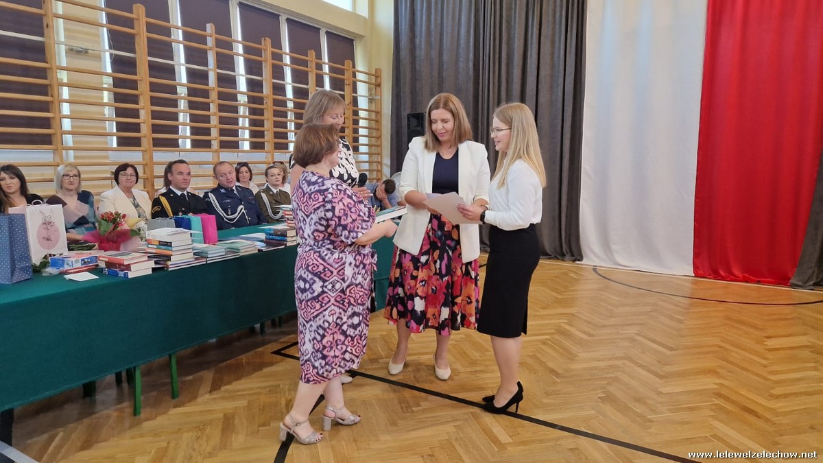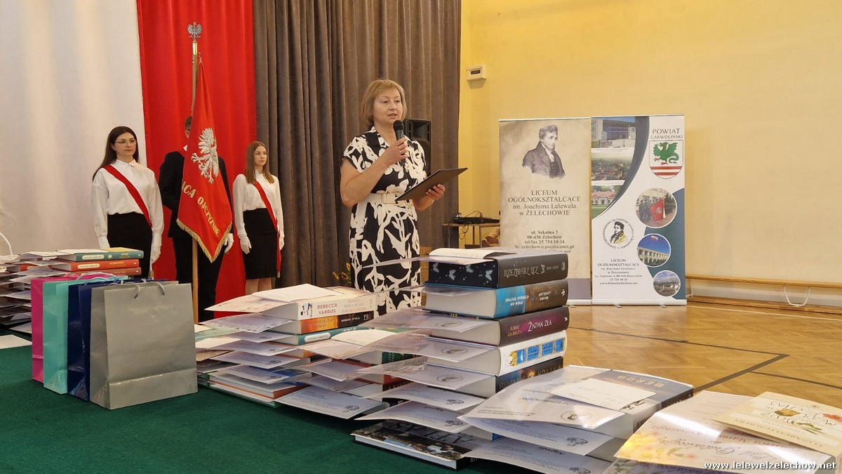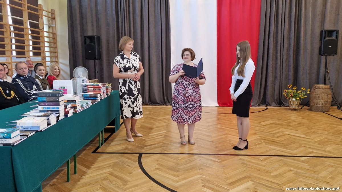 Uczniowie osiągający najwyższe wyniki w szkole zostali wyróżnieni nagrodami książkowymi, a ich rodzice otrzymali listy gratulacyjne