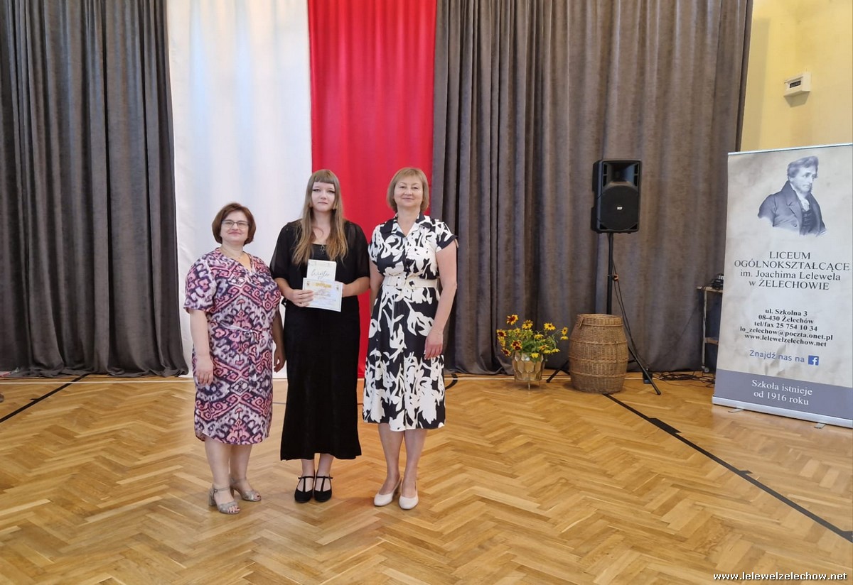 Uczennica Patrycja Polak, która uzyskała najwyższy wynik w szkole, dodatkowo otrzymała nagrodę Starosty Powiatu Garwolińskiego, a Maria Lesisz za aktywne uczestnictwo w życiu gminy nagrodę Burmistrz Żelechowa’
