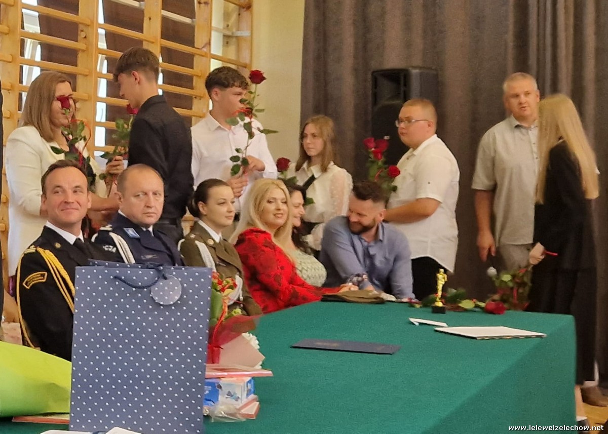 Życzenia Starosty Powiatu Garwolińskiego Iwony Kurowskiej odczytała pani Justyna Maszkiewicz. Przedstawiciele policji, wojska i straży pogratulowali uczniom sukcesów i życzyli bezpiecznych wakacji.