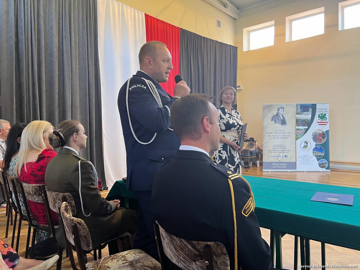 21 czerwca w naszym liceum odbyło się zakończenie roku szkolnego 2023/2024. Ten szczególny moment w życiu społeczności szkolnej uświetnili swoją obecnością: pani Justyna Maszkiewicz - Dyrektor Wydziału Edukacji, Kultury i Sportu Powiatu Garwolińskiego, mł.insp.Dariusz Gaładyk - I zastępca Komendanta Powiatowej Policji w Garwolinie, mł.bryg.Wojciech Krupa - zastępca Dowódcy Jednostki Ratowniczo-Gaśniczej Powiatowej Państwowej Straży Pożarnej w Garwolinie, ppor. Katarzyna Poreda - przedstawiciel Wojskowego Centrum Rekrutacyjnego oraz Paulina Pytkowska i Marcin Skarżyński z Fundacji Centrum Rozwoju Inicjatyw Publicznych.