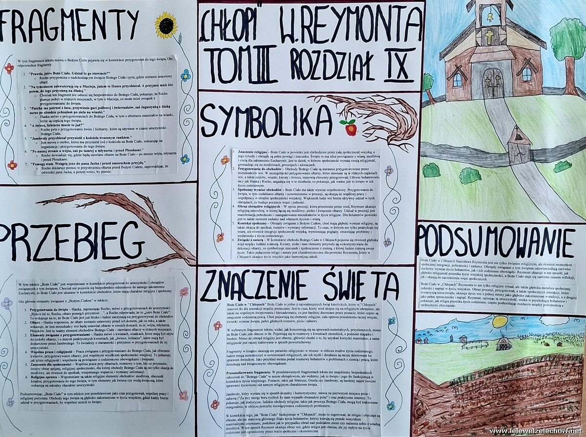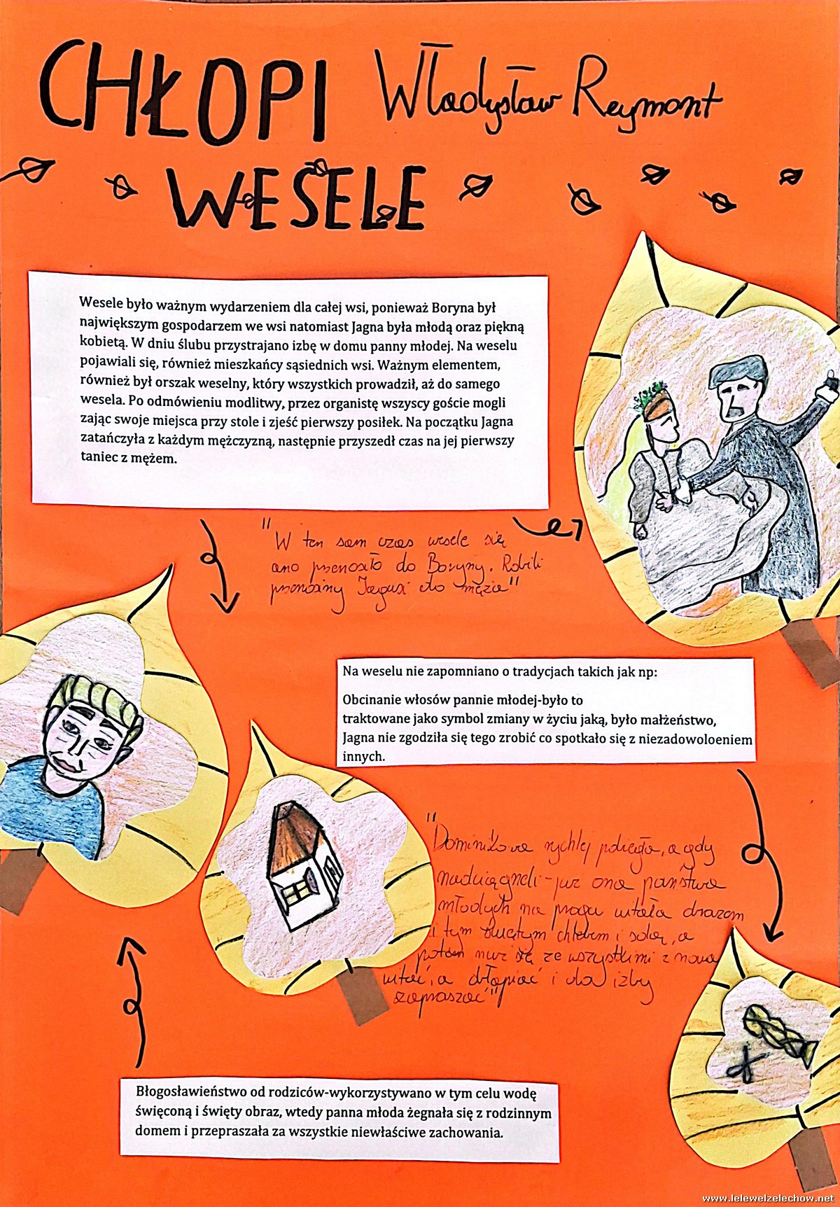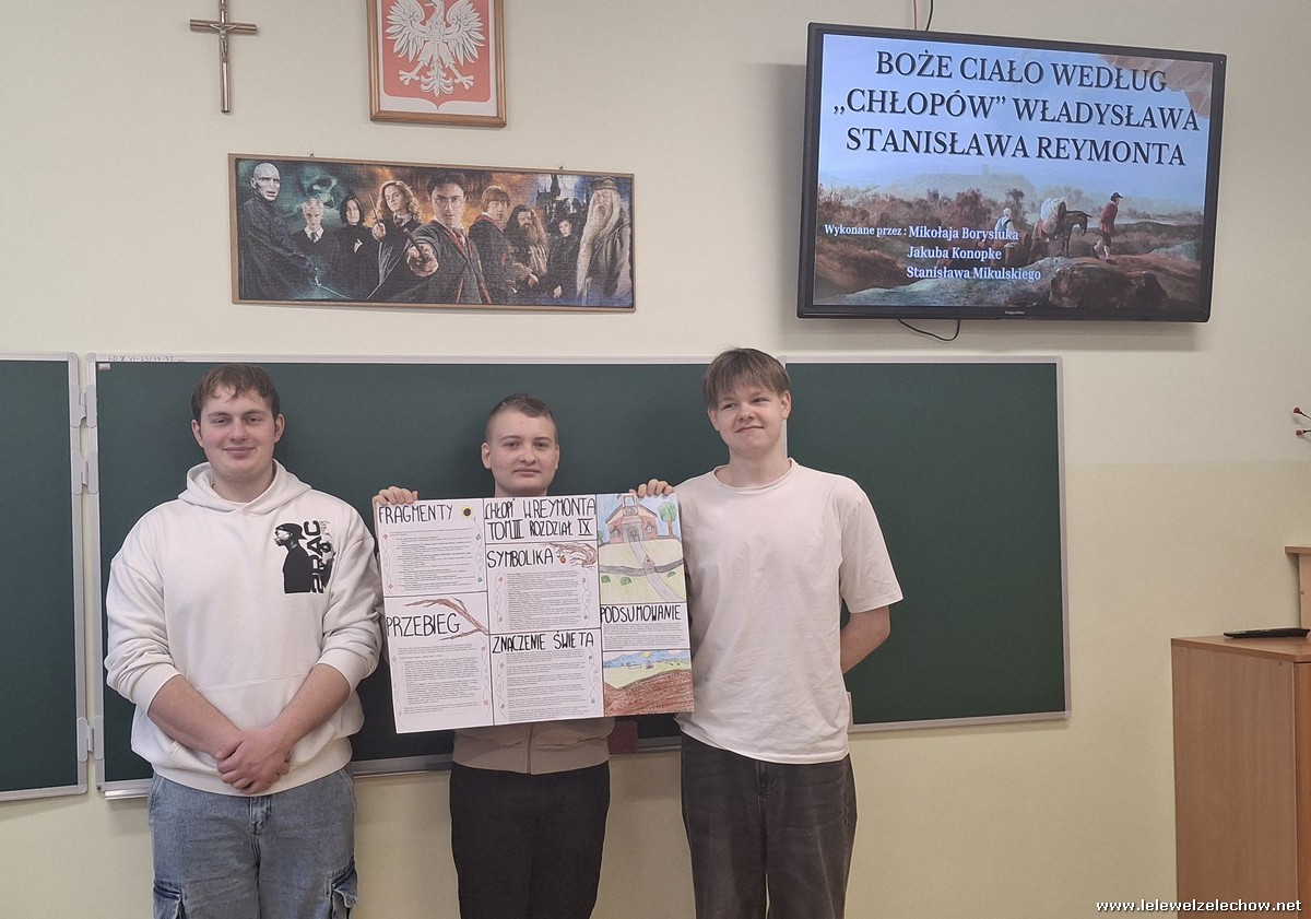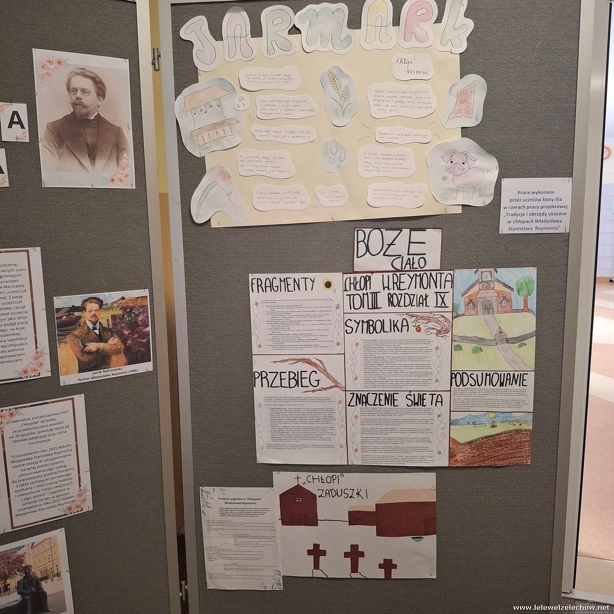 Decyzją Senatu Rzeczypospolitej Polskiej rok 2025 poświęcony jest pamięci Władysława Stanisława Reymonta, wybitnego polskiego pisarza, autora m.in. „Chłopów” czy „Ziemi obiecanej”, laureata Literackiej Nagrody Nobla z 1924 roku. W podstawie programowej nauczania języka polskiego, mimo wprowadzanych zmian, nadal znajdują się do omówienia fragmenty „Chłopów”. W tym roku klasa 3a zrealizowała projekt dotyczący obrzędów i tradycji ukazanych w tym chłopskim eposie. Każda z grup przygotowała dokładną analizę scen opisujących m. in. Boże Narodzenie, Święto Zmarłych, Wielkanoc, śmierć i pogrzeb Macieja Boryny, jarmark, stroje mieszkańców XIX-wiecznej wsi polskiej