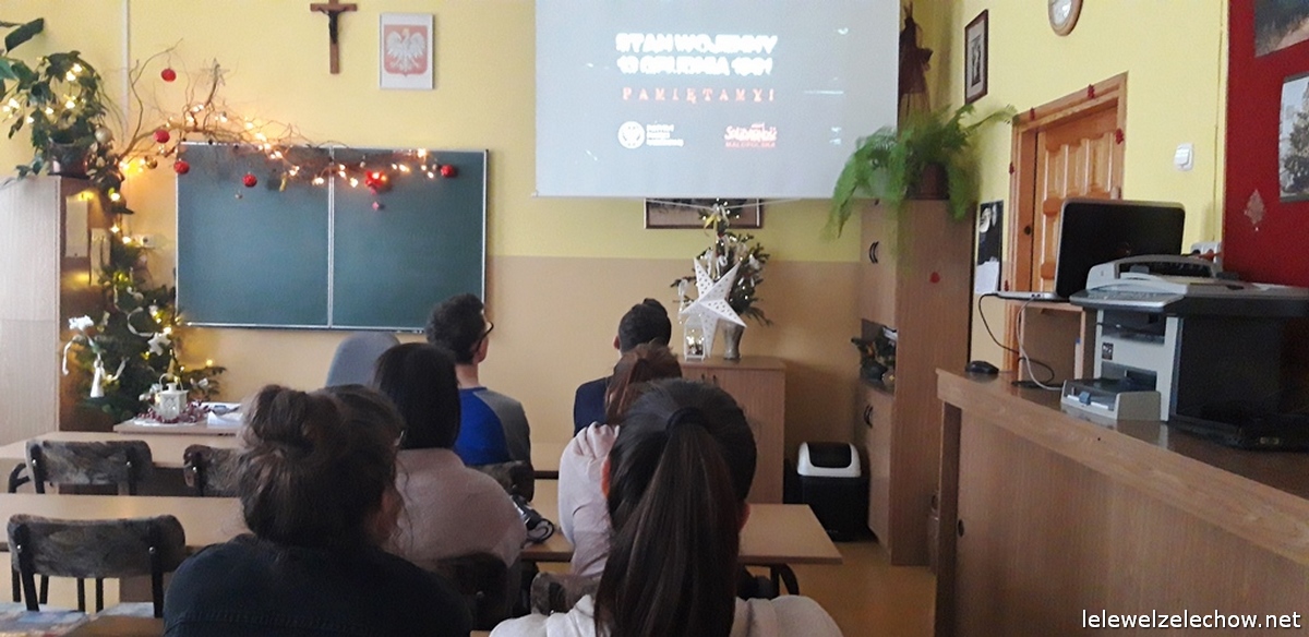 Z okazji rocznicy wprowadzenia stanu wojennego w naszej szkole odbyły się lekcje poświęcone wydarzeniom sprzed 38 lat z wykorzystaniem materiałów IPN. Delegacja klas mundurowych raz poczet liceum brały udział w uroczystościach powiatowych w Garwolinie.
